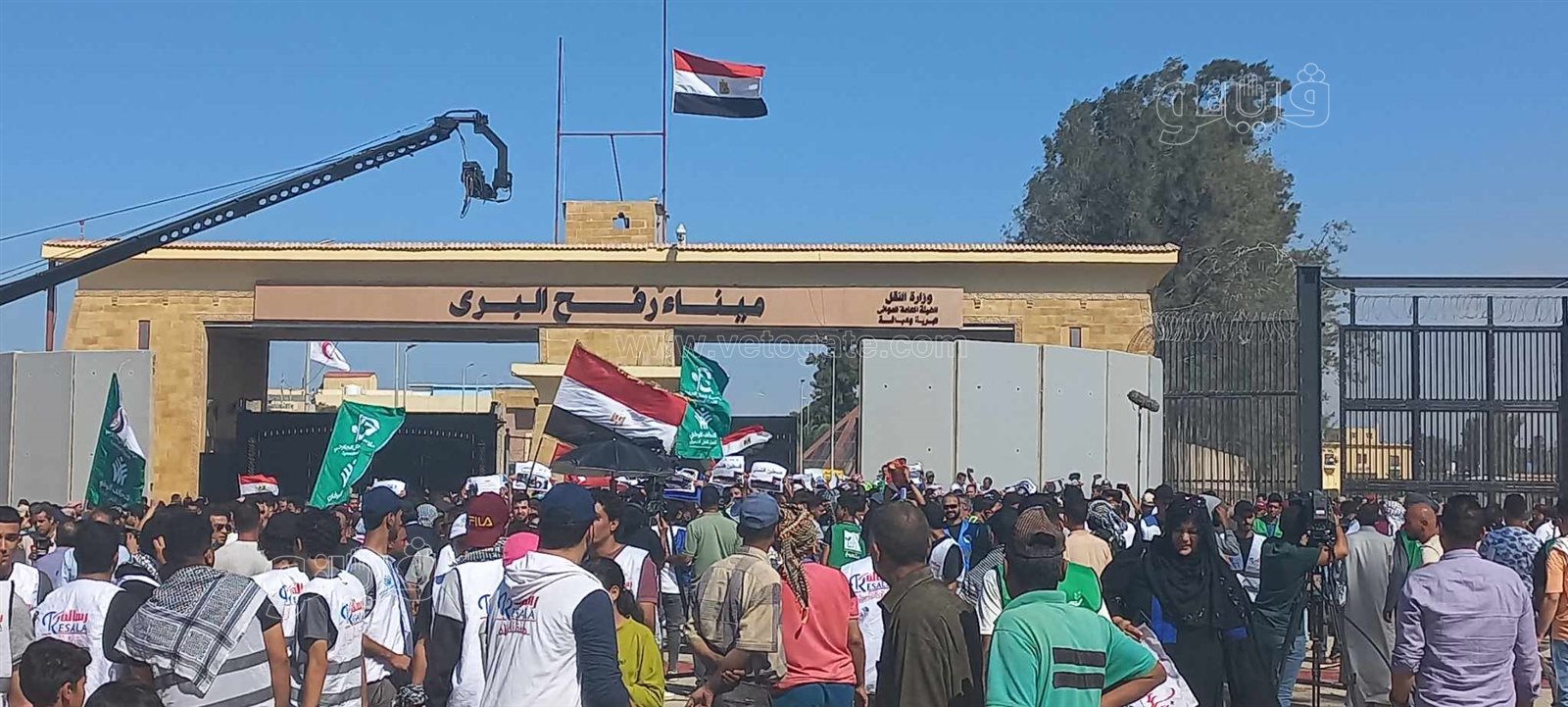 احتشد العشرات من الشباب على بوابة معبر رفح البري مطالبين بفتح المعبر لإدخال المساعدات إلى غزة وذلك في حضور الأمين العام للأمم المتحدة والوفد المرافق له.