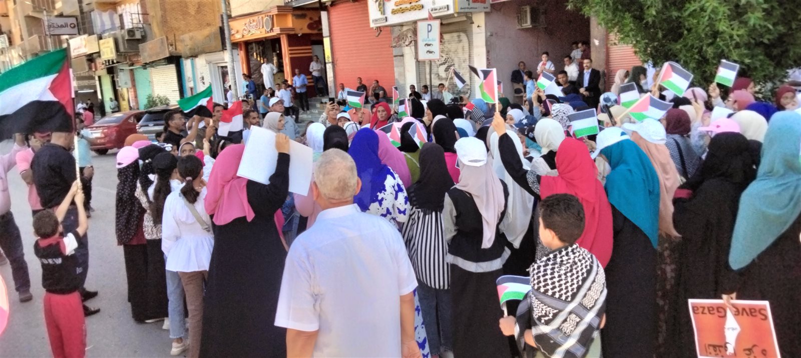وهتف المئات من أهالي واحات الوادي الجديد، في ميدان الساحة بواحة الخارجة، "يافلسطين يا فلسطين أحنا وراك ليوم الدين"، تضامنًا مع الشعب الفلسطيني ضد العدوان الإسرائيلي الغاشم الذي استهدف الأطفال والنساء والشيوخ في غزة وارتكب العديد من المجازر التي راح ضحيتها المئات من الأطفال الأبرياء.