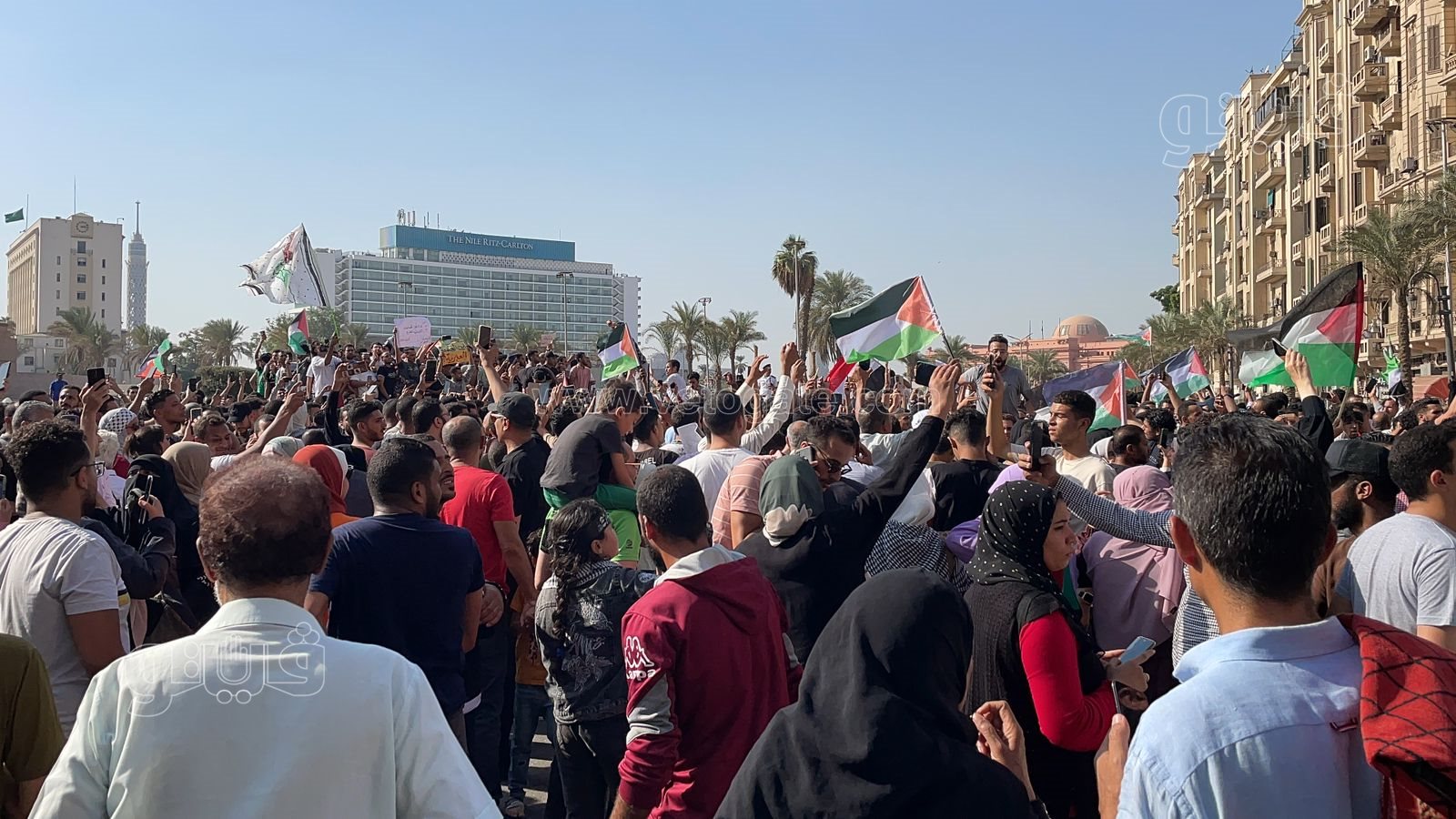 وكانت المسيرة انطلقت من أمام جامع الأزهر بعد انتهائهم من صلاة الجمعة، لتجوب شوارع القاهرة، وصولا إلى ميدان التحرير رافعين أعلام فلسطين ومرددين هتافات تندد بالجرائم والمجازر الوحشية التي ارتكبها الكيان الصهيوني الغاشم في حق الأطفال والنساء والأبرياء في غزة، ومذبحة المستشفى الأهلي المعمداني.