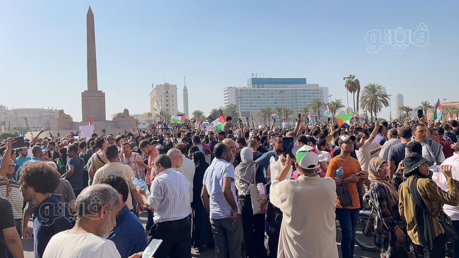 وصلت منذ قليل مسيرة تضم الآلاف من المواطنين من جميع الأعمار إلى ميدان التحرير، بوسط القاهرة، وذلك للتضامن مع الشعب الفلسطيني.