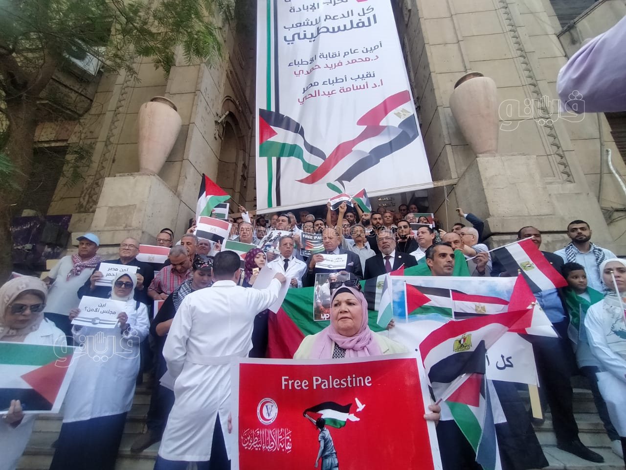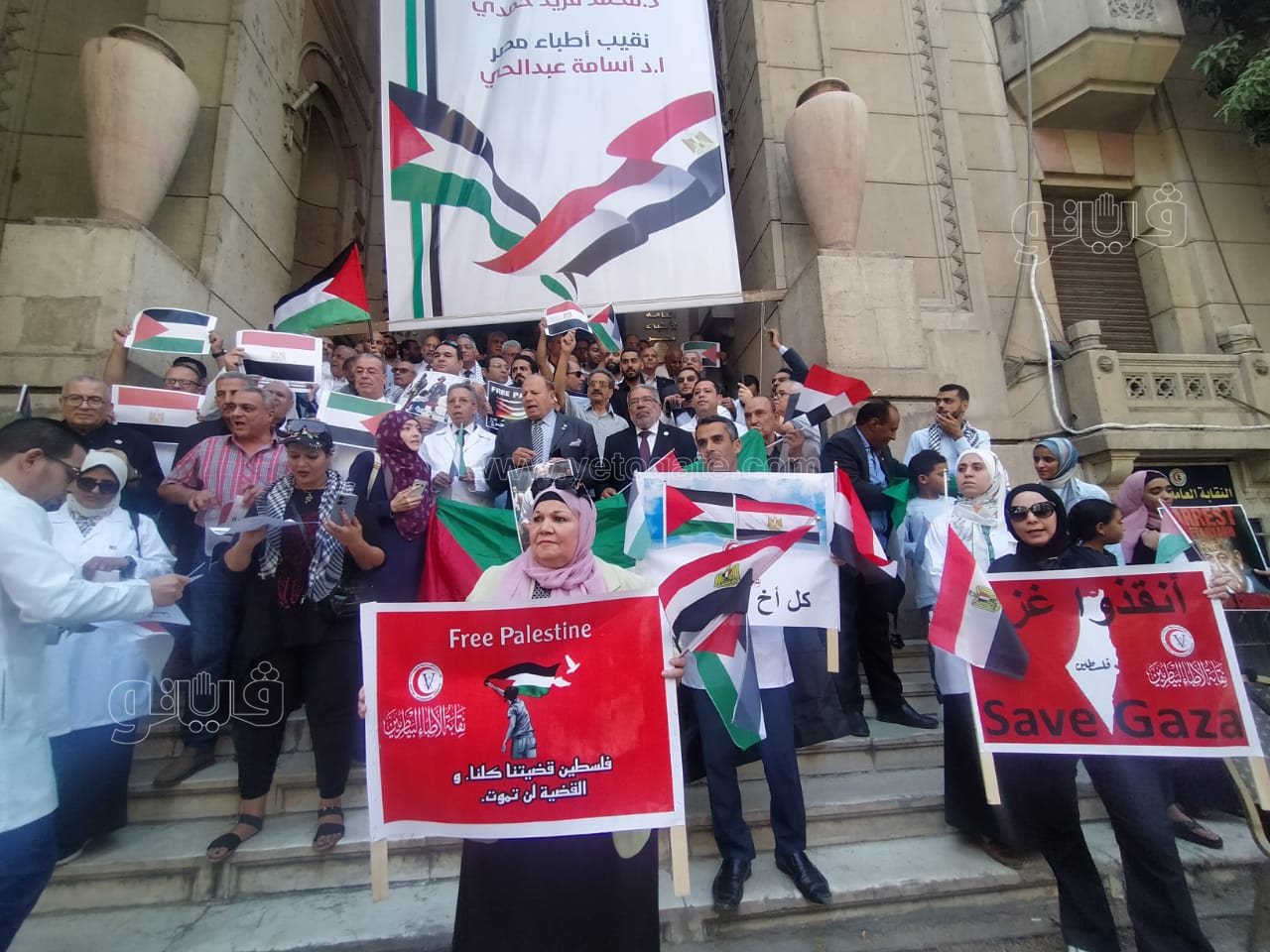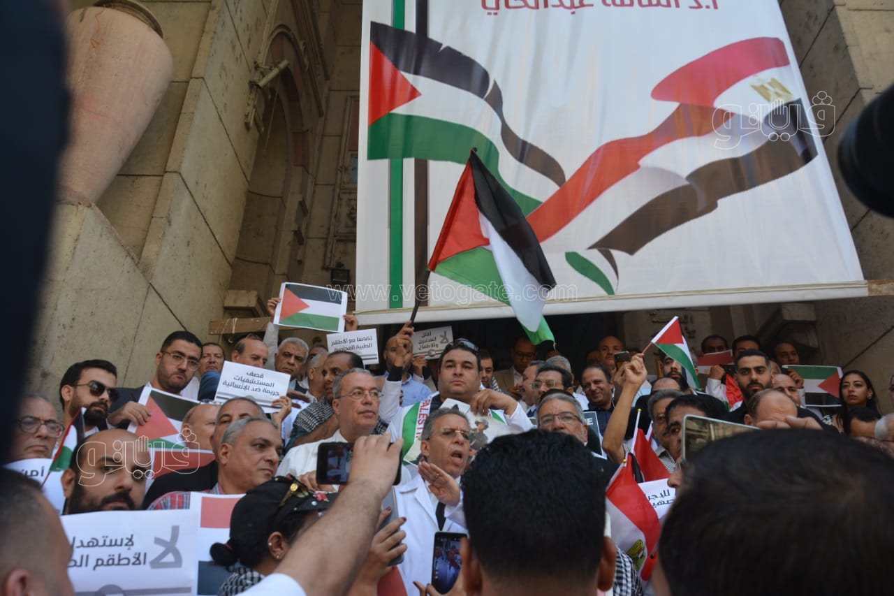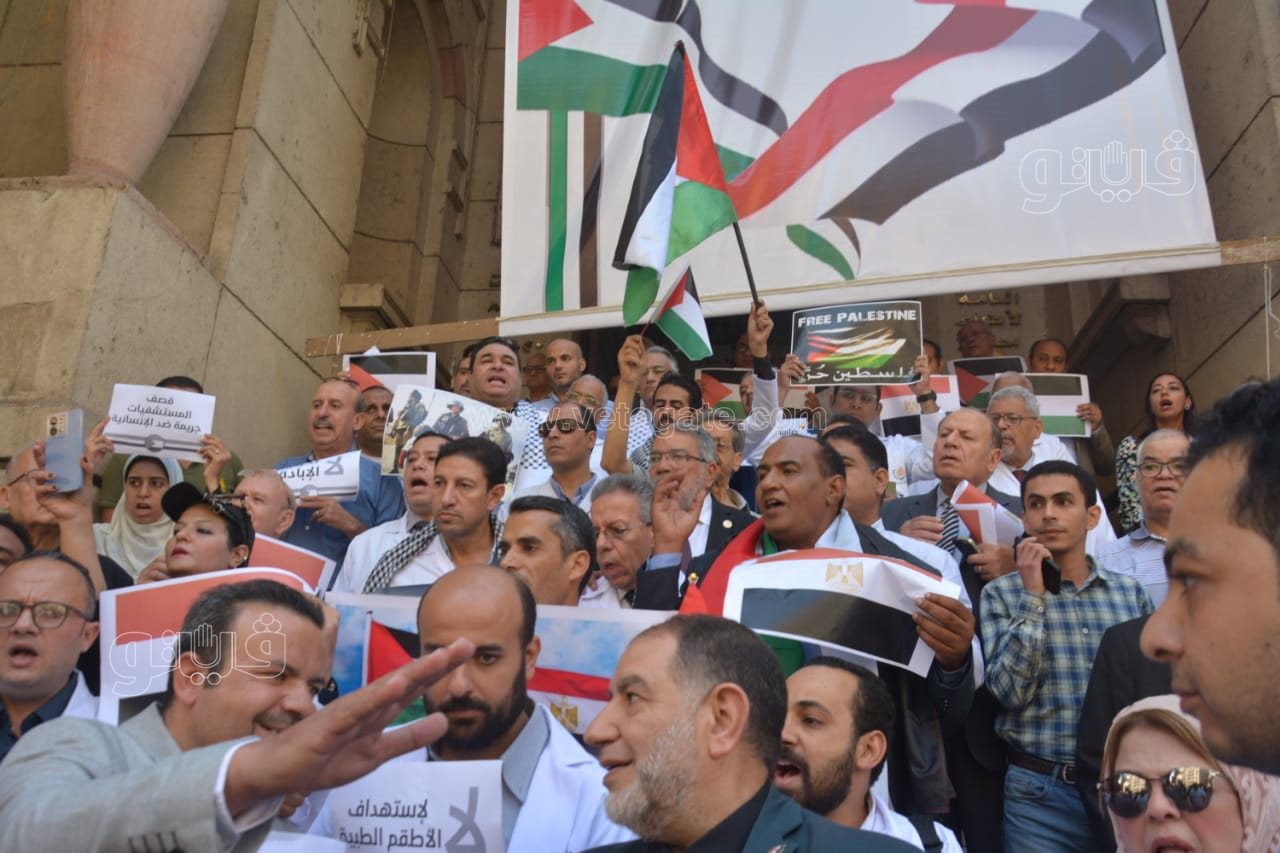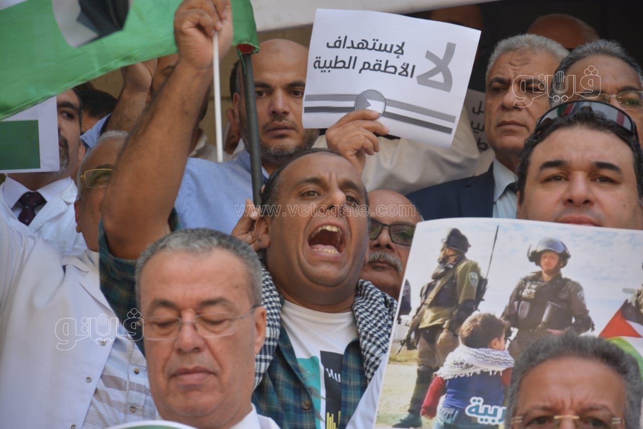 وردد الأطباء: "نتنياهو مجرم حرب، سامع صوتك يا فلسطين إحنا معاكي ليوم الدين، بالروح بالدم نفديك يا أقصى".