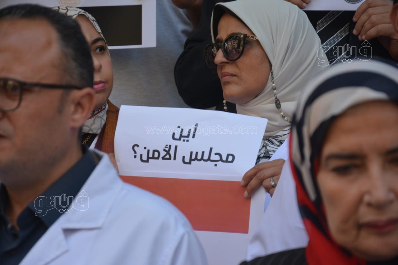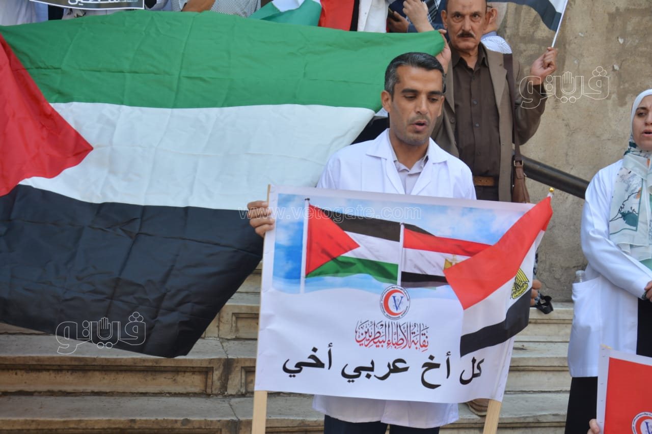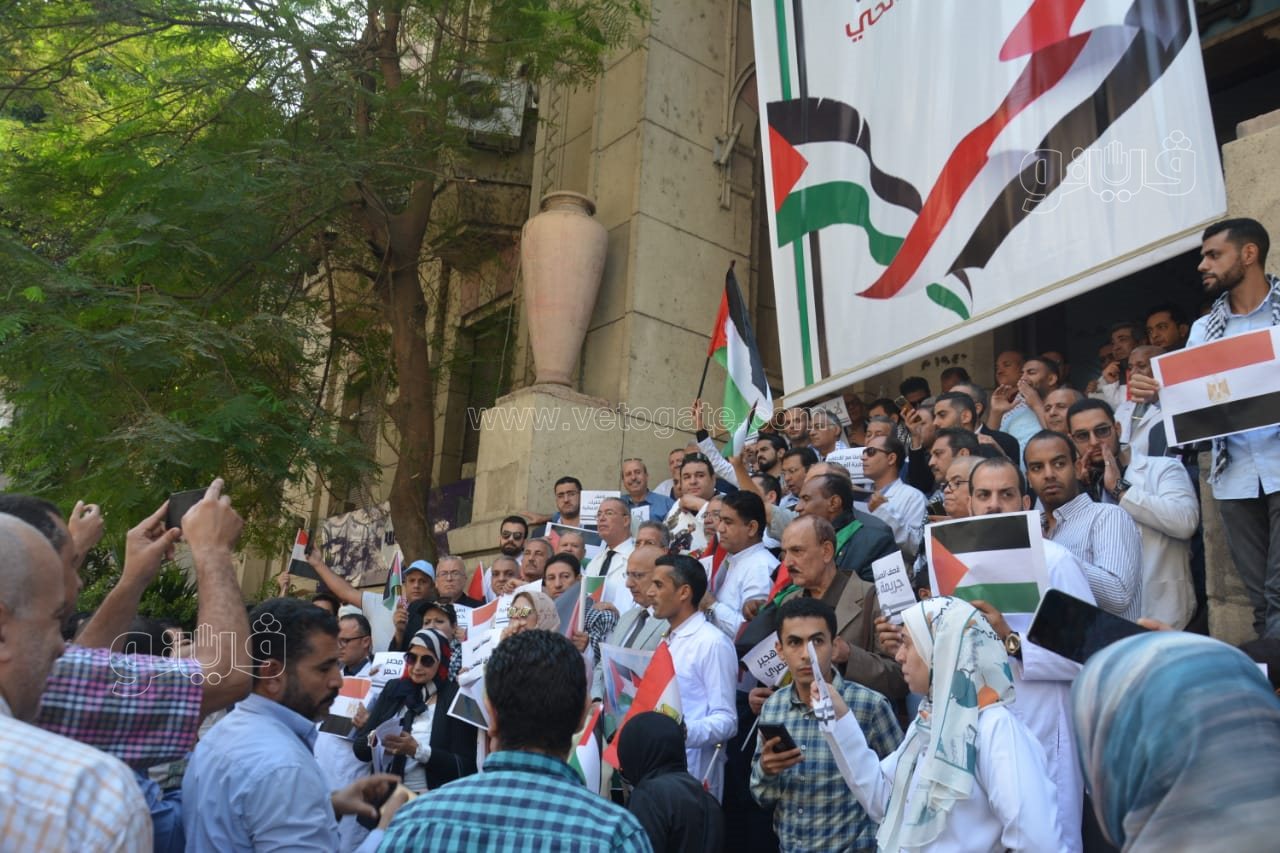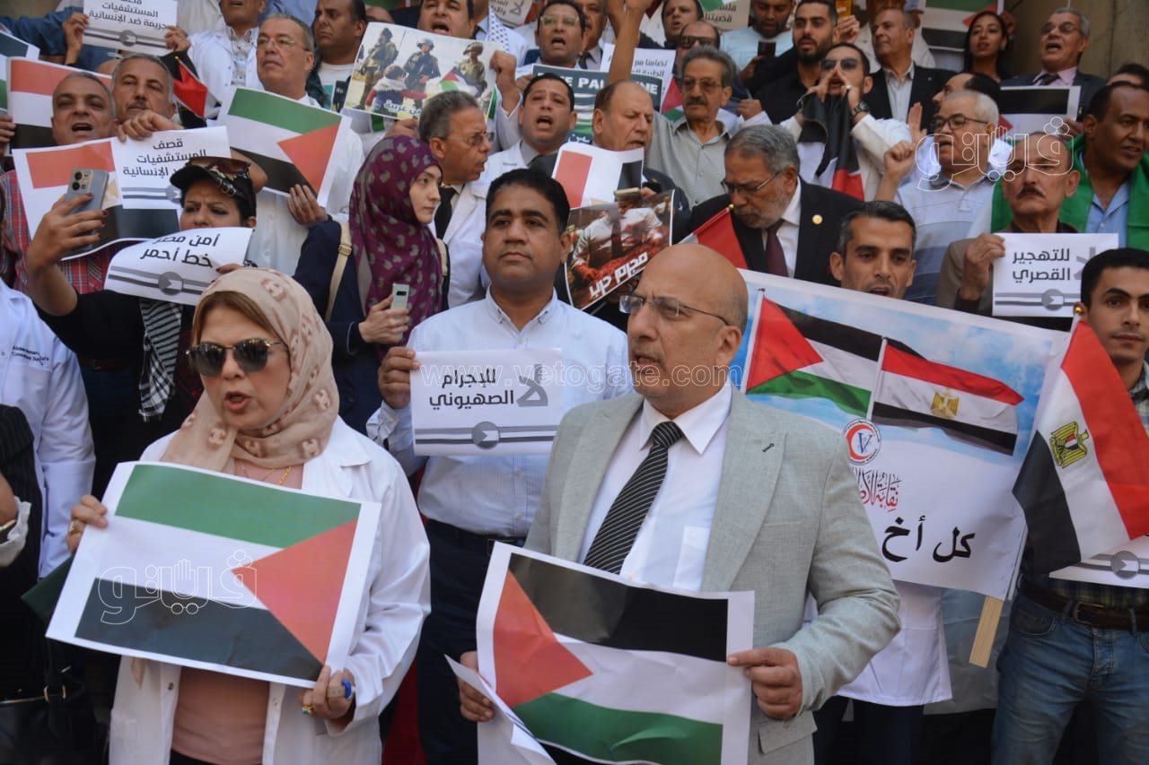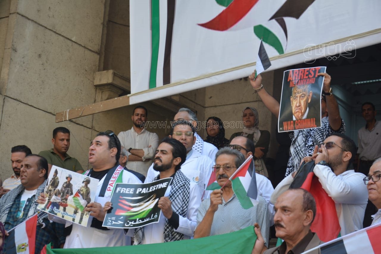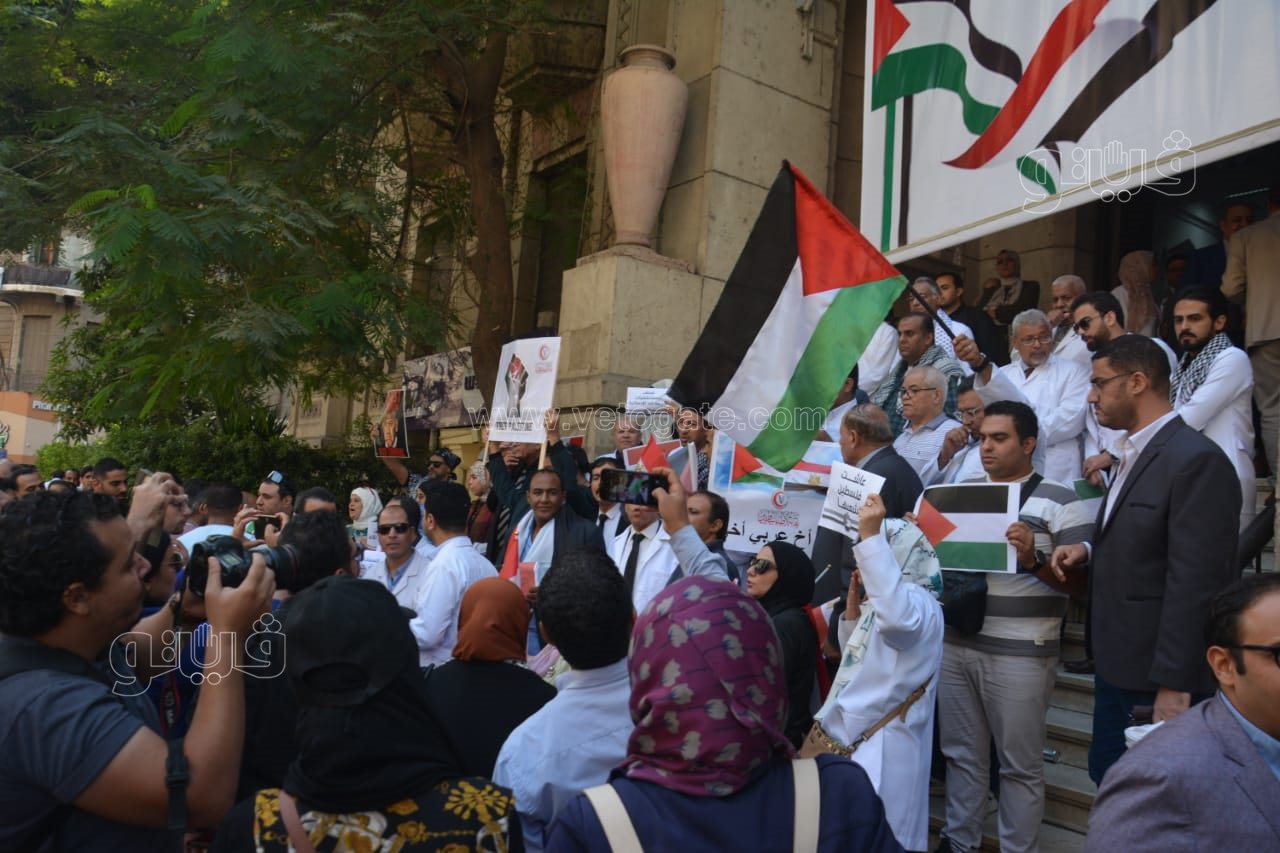 وردد الأطباء: "نتنياهو مجرم حرب، سامع صوتك يا فلسطين إحنا معاكي ليوم الدين، بالروح بالدم نفديك يا أقصى".