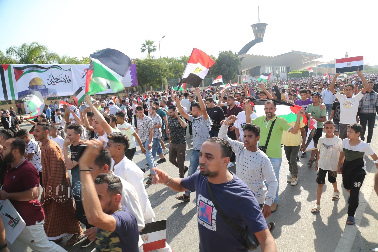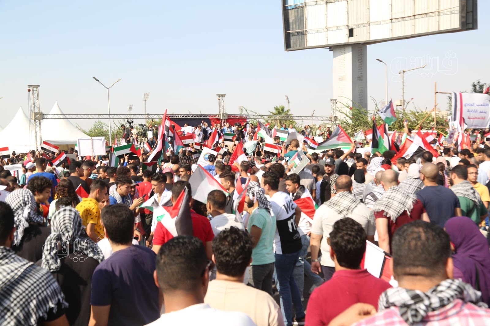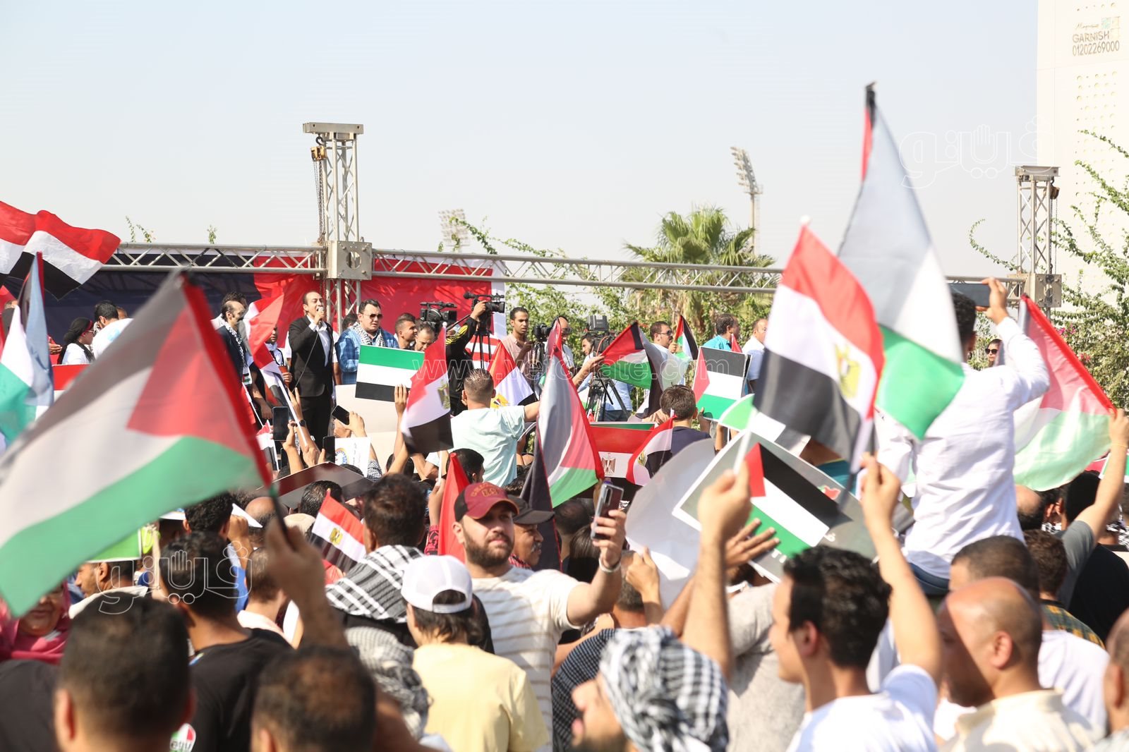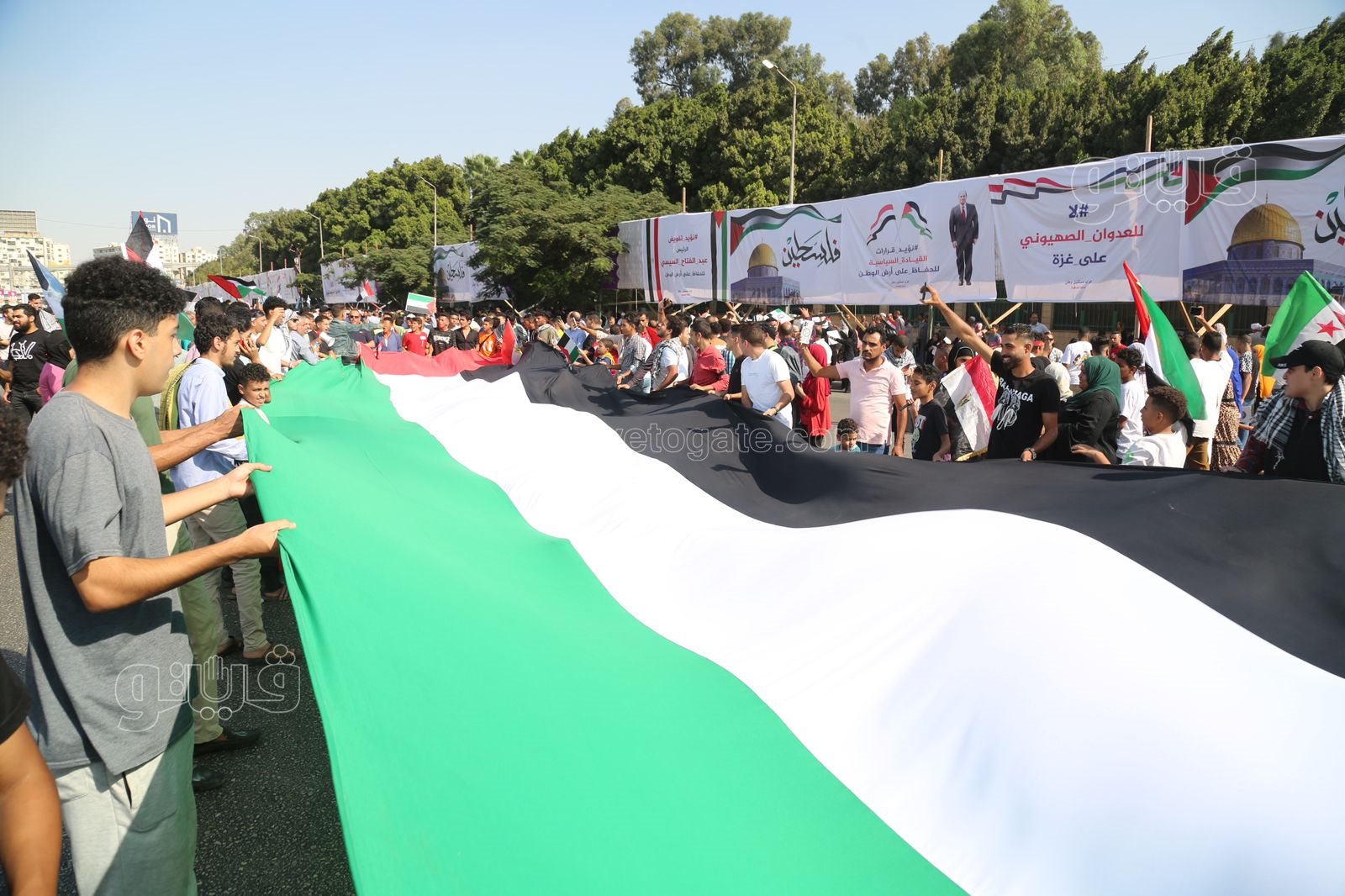 تجمع المتظاهرون في محيط النصب التذكاري بمدينة نصر اليوم الجمعة؛ لدعم القضية الفلسطينية وتنديدا بمجازر جيش الاحتلال الإسرائيلي بحق الفلسطينيين واستهداف المستشفيات وتفجير المنازل على رؤوس ساكنيها.