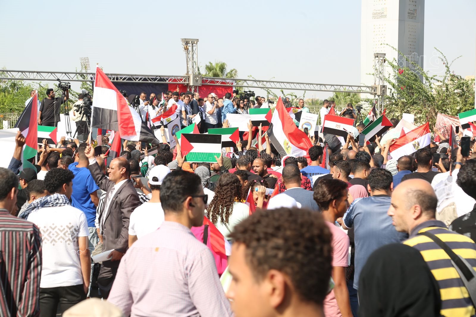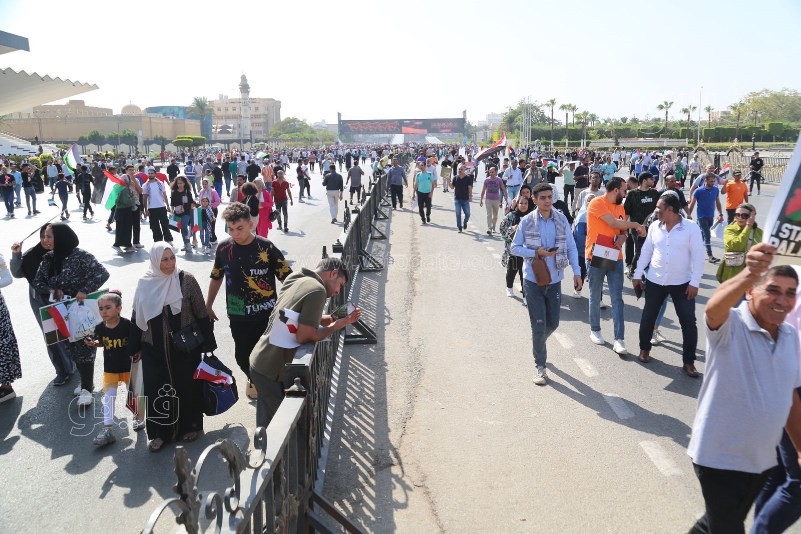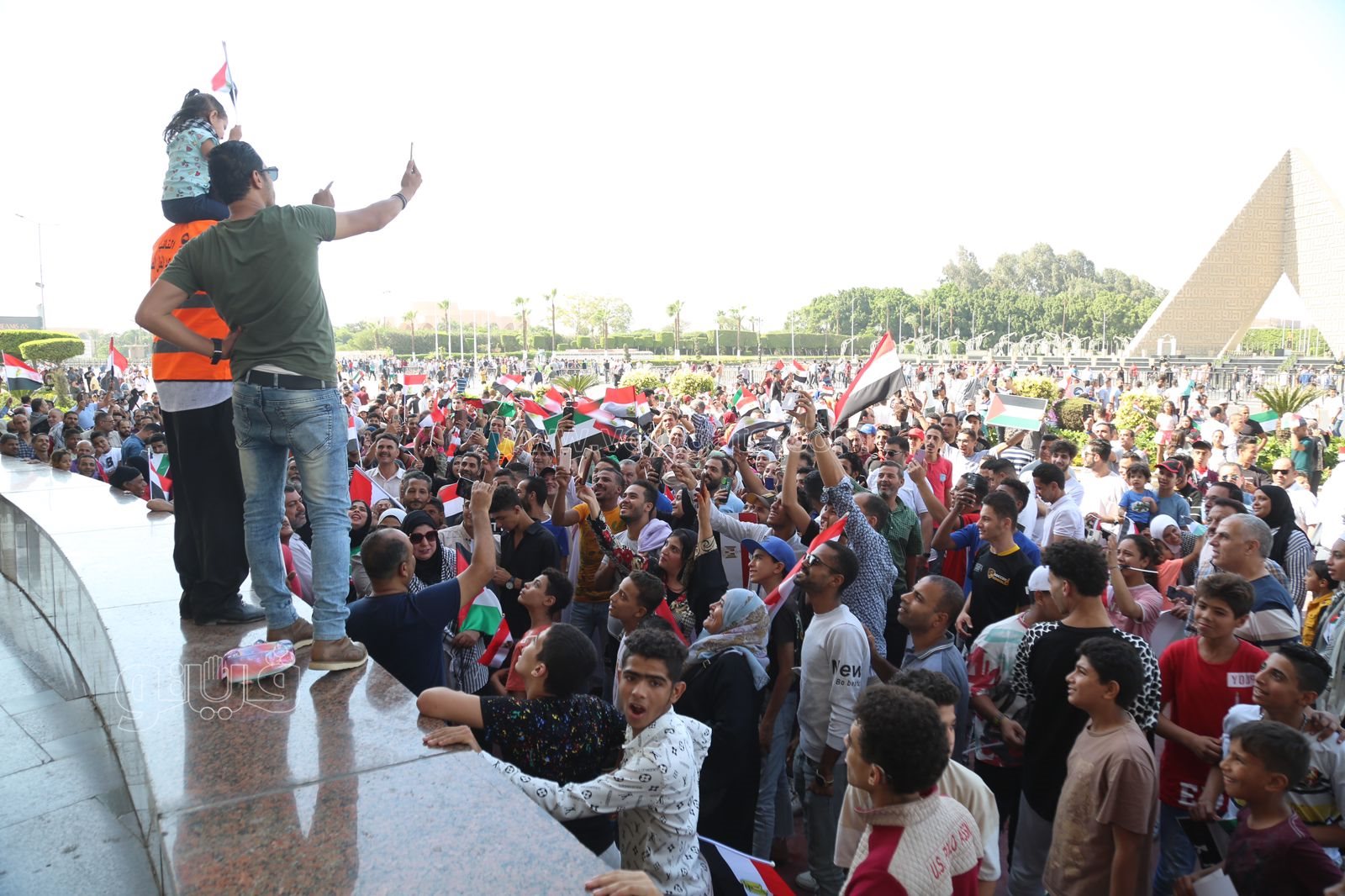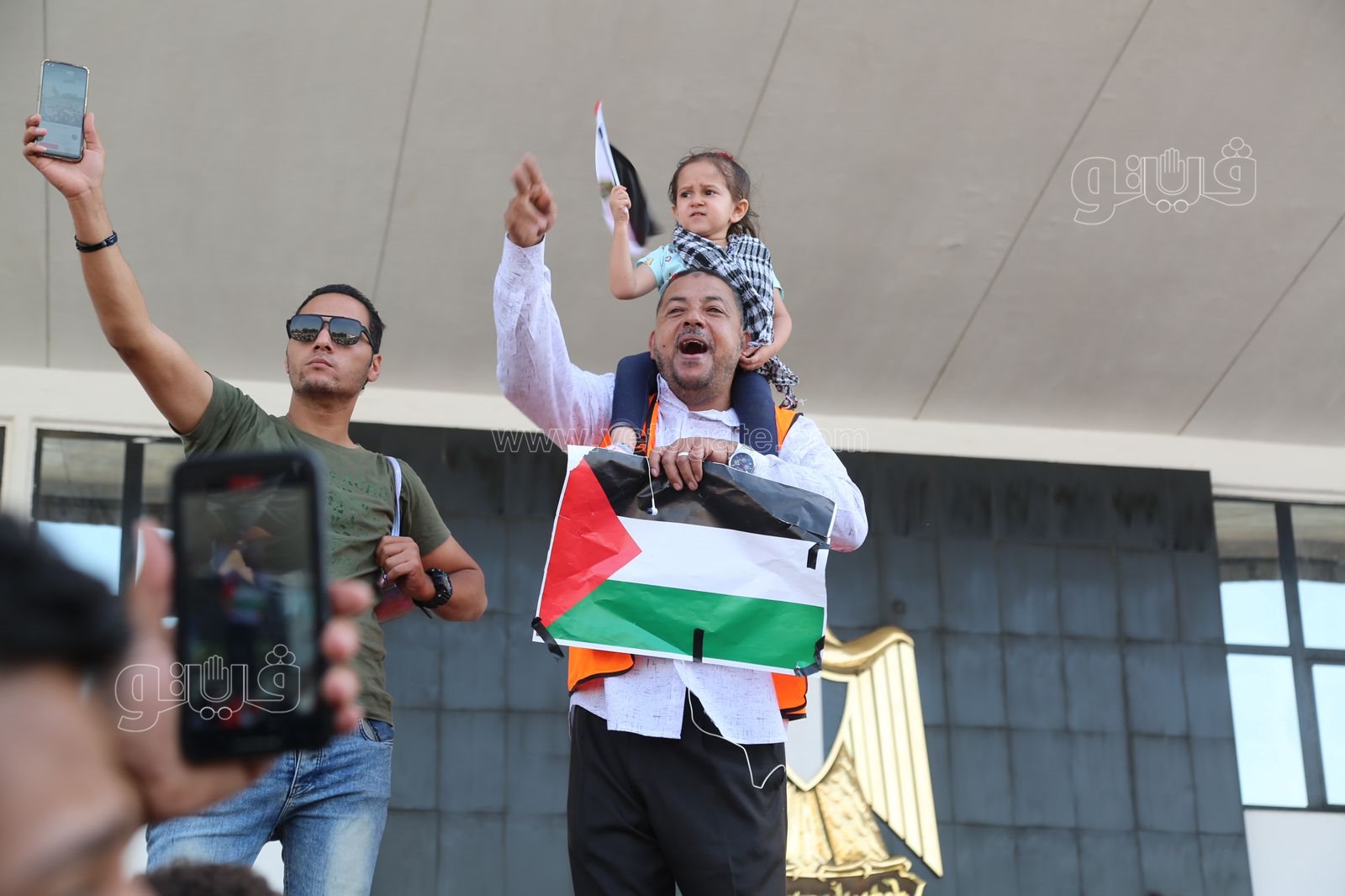 تجمع المتظاهرون في محيط النصب التذكاري بمدينة نصر اليوم الجمعة؛ لدعم القضية الفلسطينية وتنديدا بمجازر جيش الاحتلال الإسرائيلي بحق الفلسطينيين واستهداف المستشفيات وتفجير المنازل على رؤوس ساكنيها.
