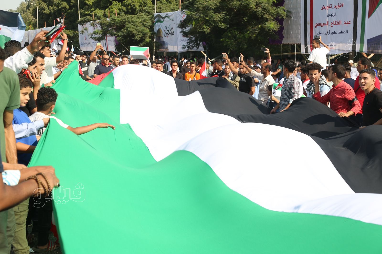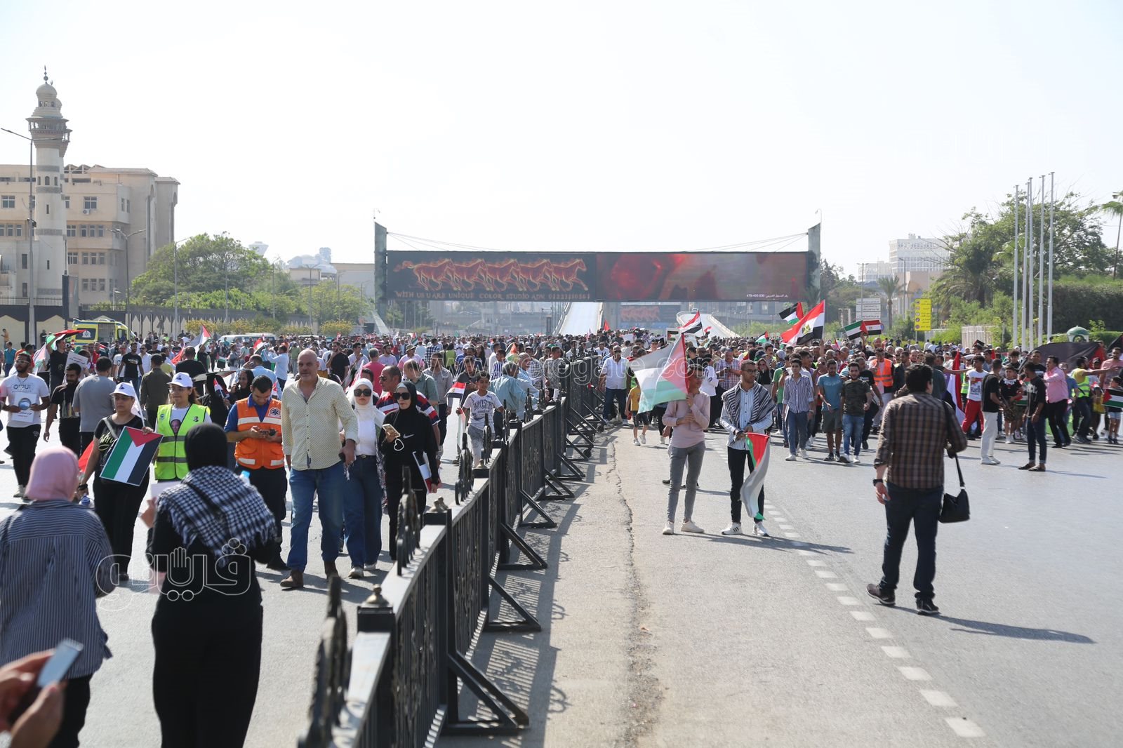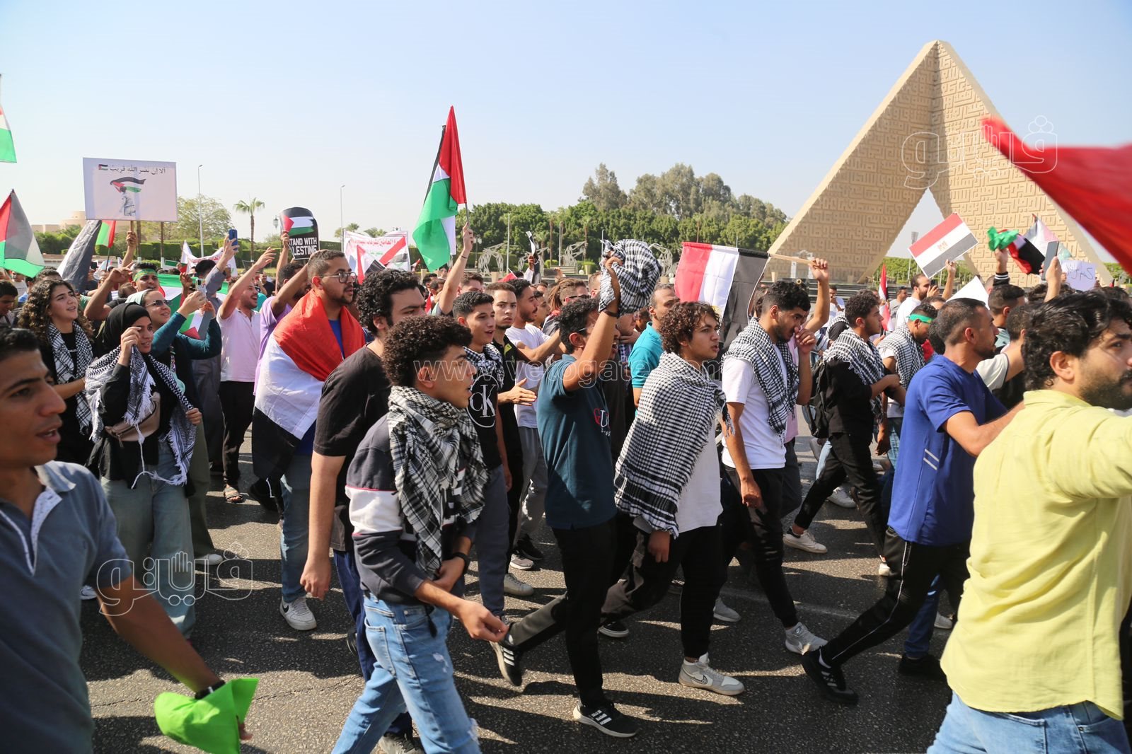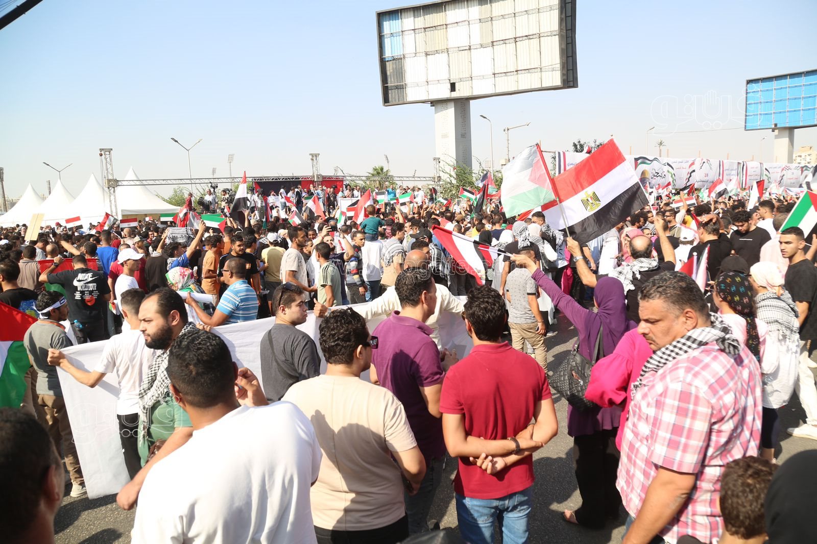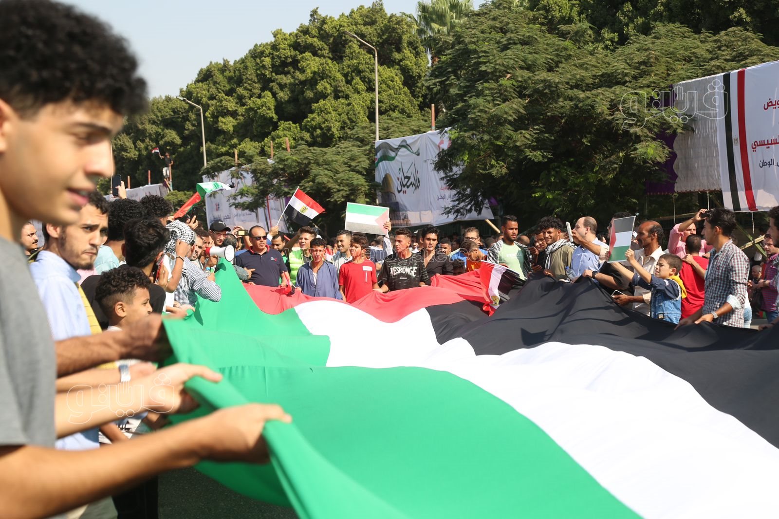 تجمع المتظاهرون في محيط النصب التذكاري بمدينة نصر اليوم الجمعة؛ لدعم القضية الفلسطينية وتنديدا بمجازر جيش الاحتلال الإسرائيلي بحق الفلسطينيين واستهداف المستشفيات وتفجير المنازل على رؤوس ساكنيها.