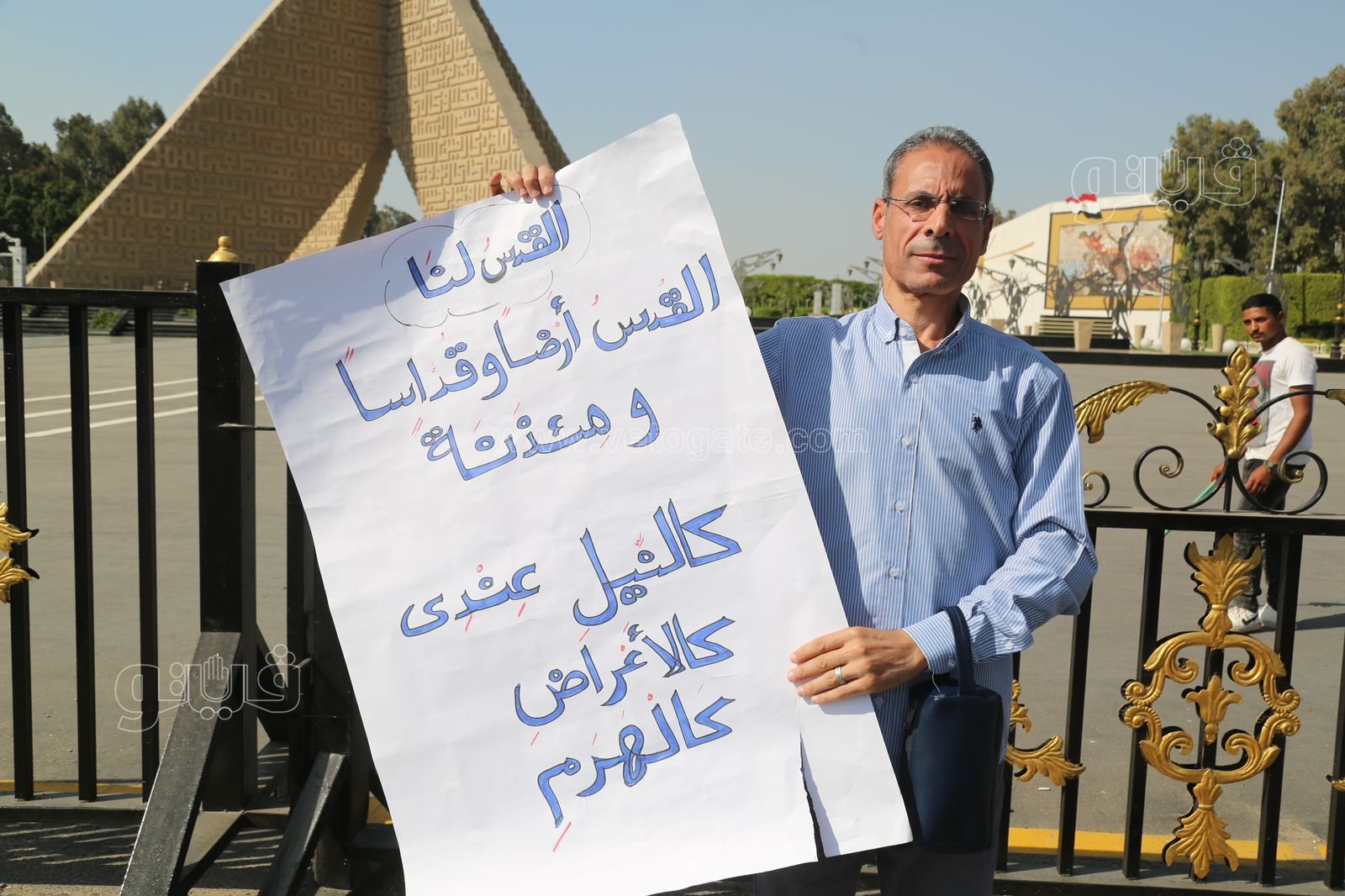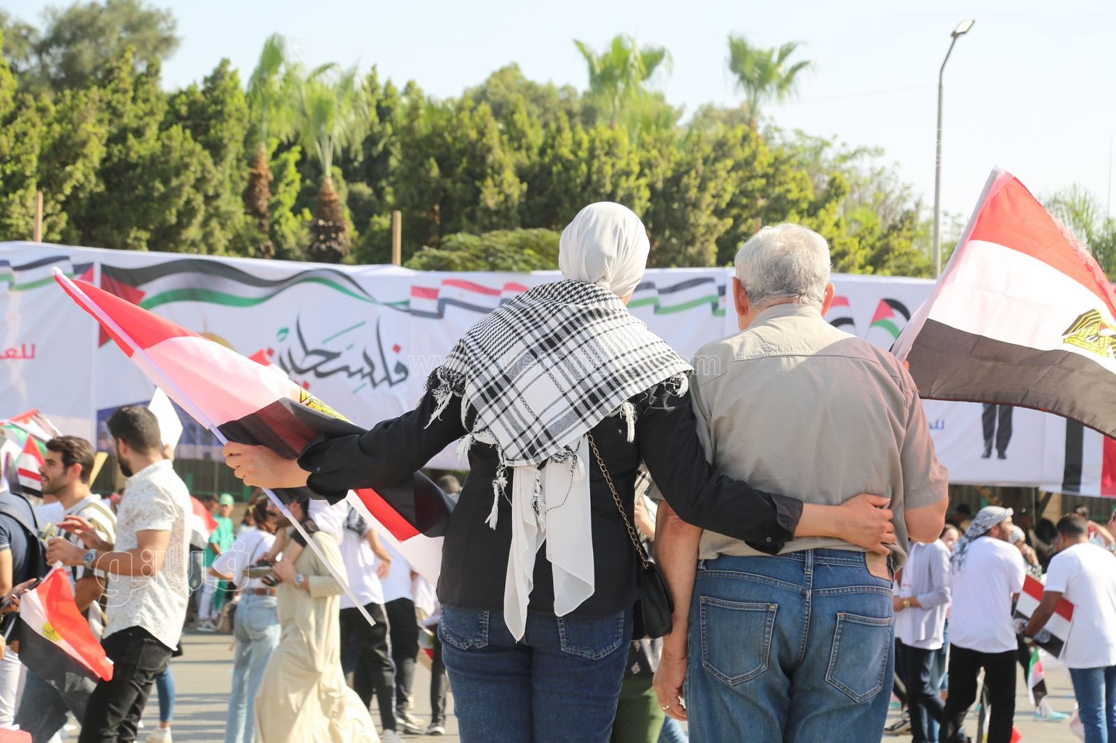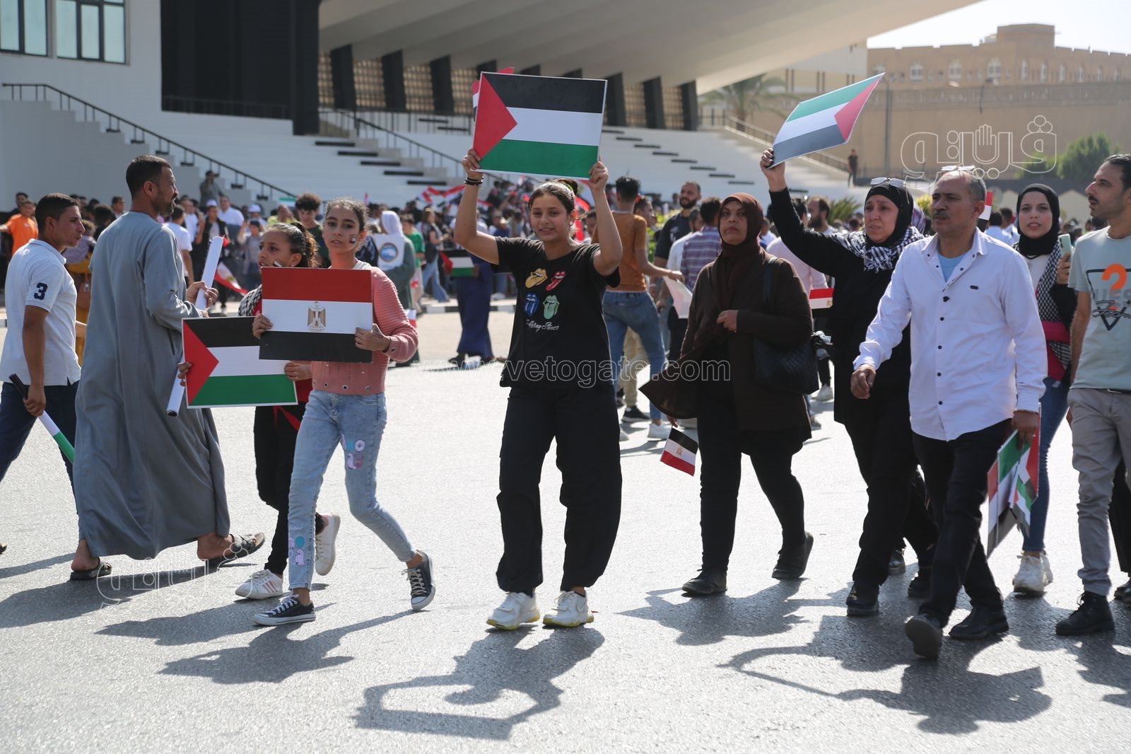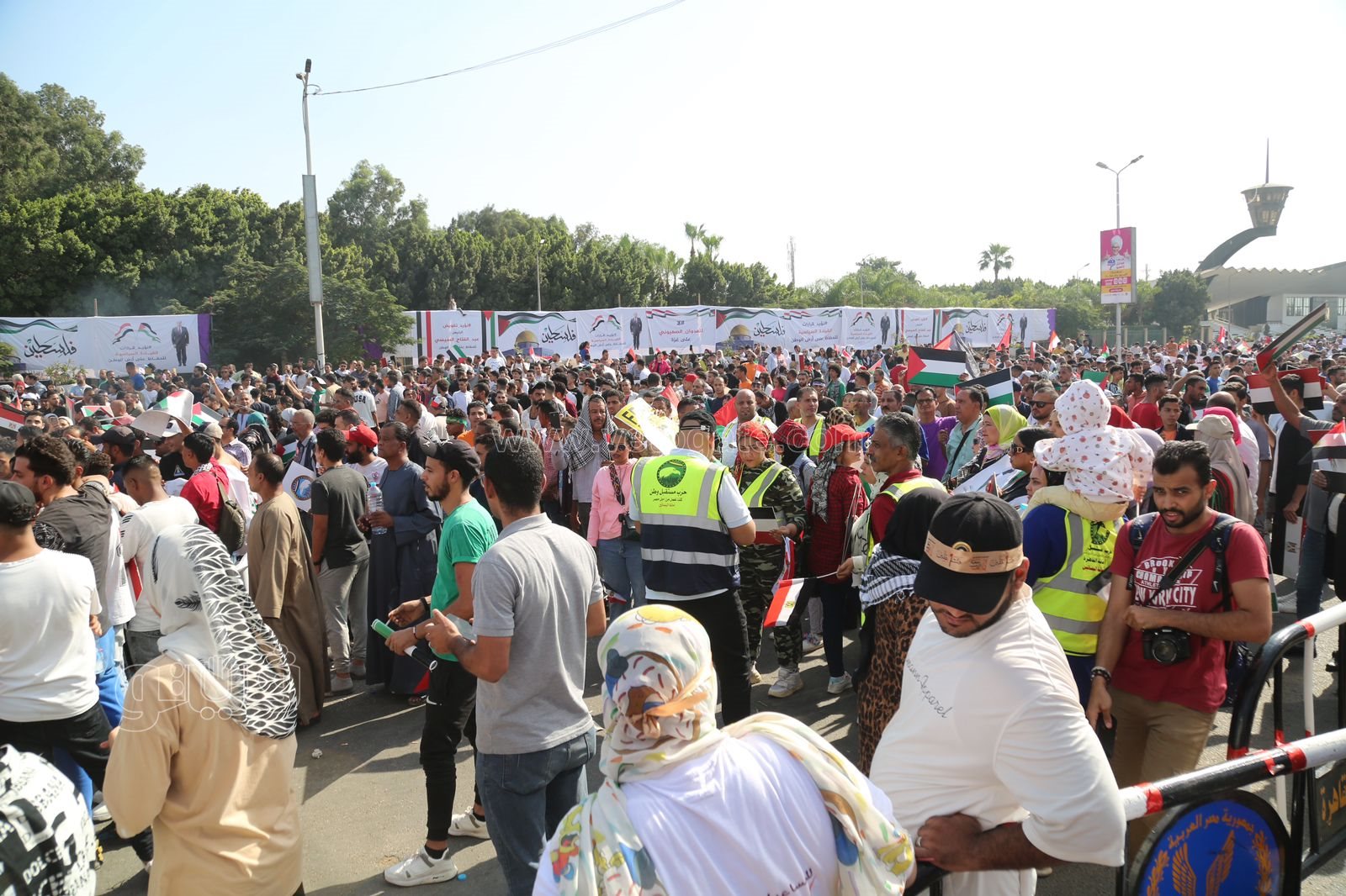 تجمع المتظاهرون في محيط النصب التذكاري بمدينة نصر اليوم الجمعة؛ لدعم القضية الفلسطينية وتنديدا بمجازر جيش الاحتلال الإسرائيلي بحق الفلسطينيين واستهداف المستشفيات وتفجير المنازل على رؤوس ساكنيها.