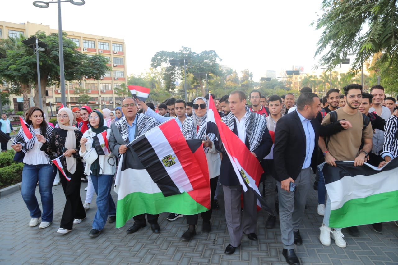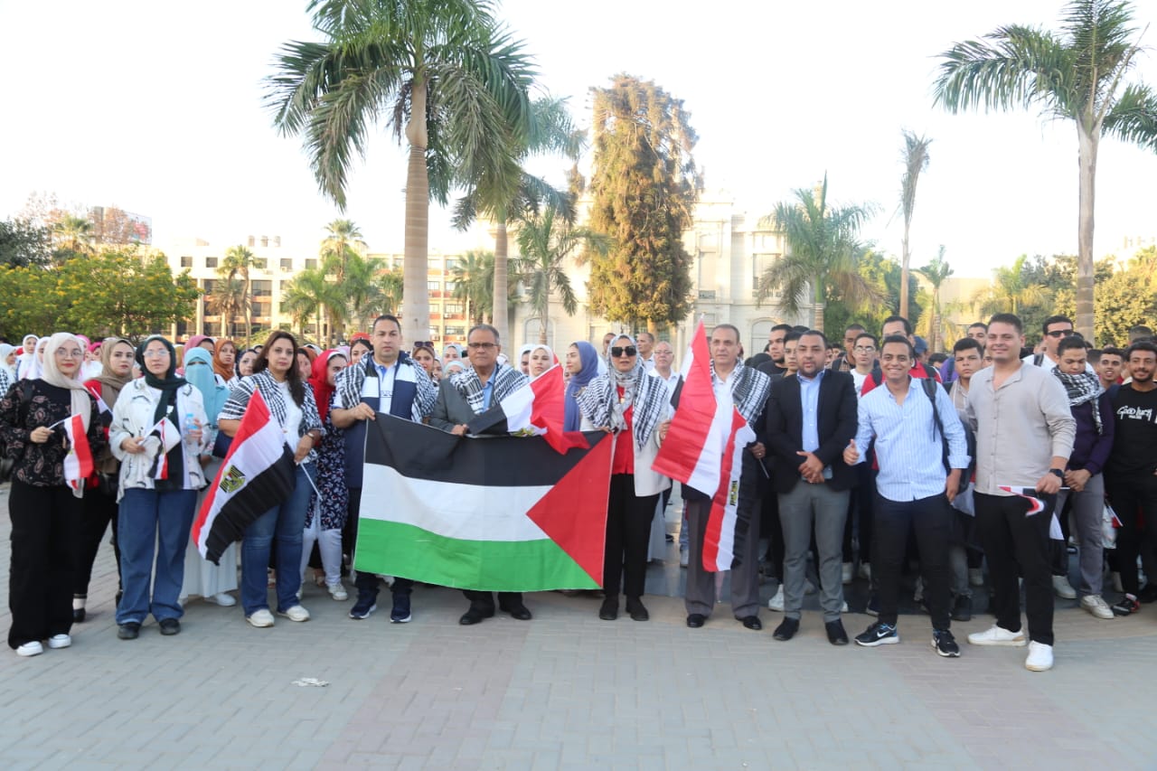 نظمت أسرة طلاب من أجل مصر بـ جامعة عين شمس بالتعاون مع اتحاد طلاب الجامعة ومجالس الاتحاد والأسر والكيانات الطلابية بالكليات وقفة تضامنية مع الشعب الفلسطيني للتنديد بممارسات جيش الاحتلال الإسرائيلي وذلك بقيادة غادة فاروق القائم بعمل رئيس جامعة عين شمس، عبد الفتاح سعود نائب رئيس الجامعة لشئون التعليم والطلاب ولفيف من عمداء ووكلاء كليات جامعة عين شمس أمام النصب التذكاري بمدينة نصر تأكيدًا علي الدعم الكامل للقضية الفلسطينية وتفويض الرئيس عبد الفتاح السيسي لاتخاذ الإجراءات اللازمة لحماية الأمن القومي المصري والدفاع عن القضية الفلسطينية.