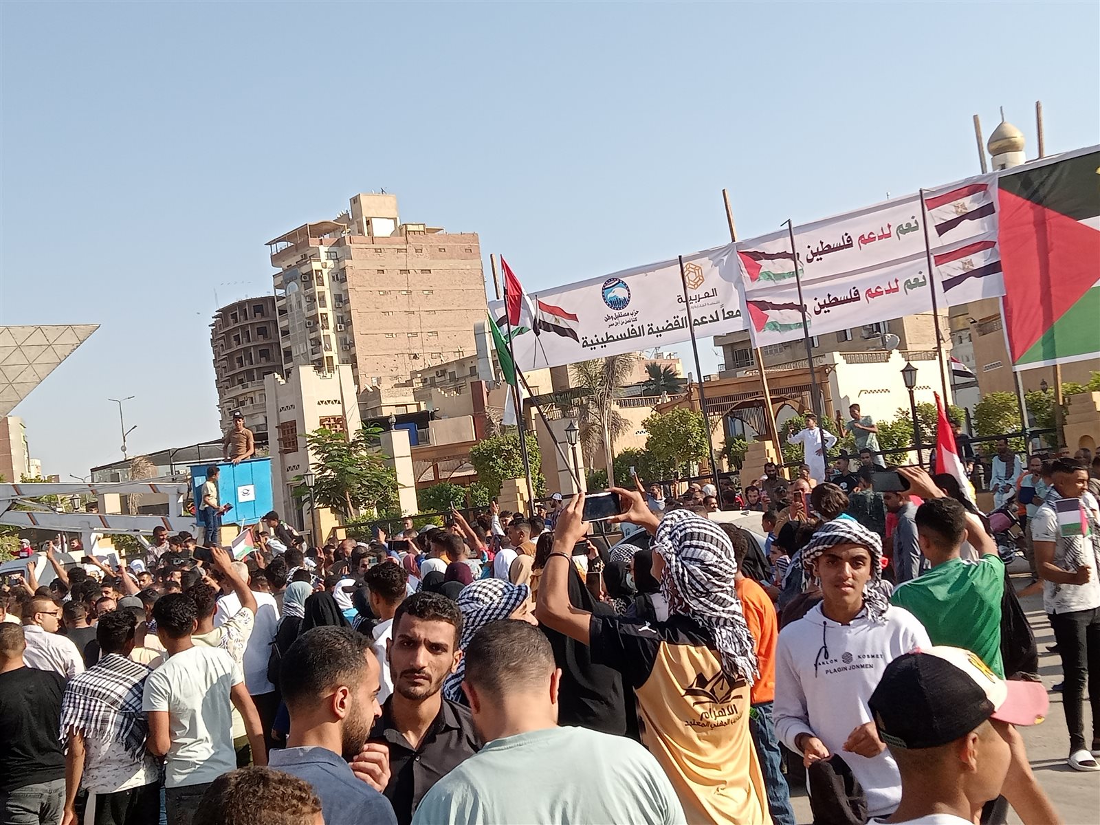 الآلاف يتجمعون في ميدان السواقي بمدينة الفيوم لدعم القضية الفلسطينية