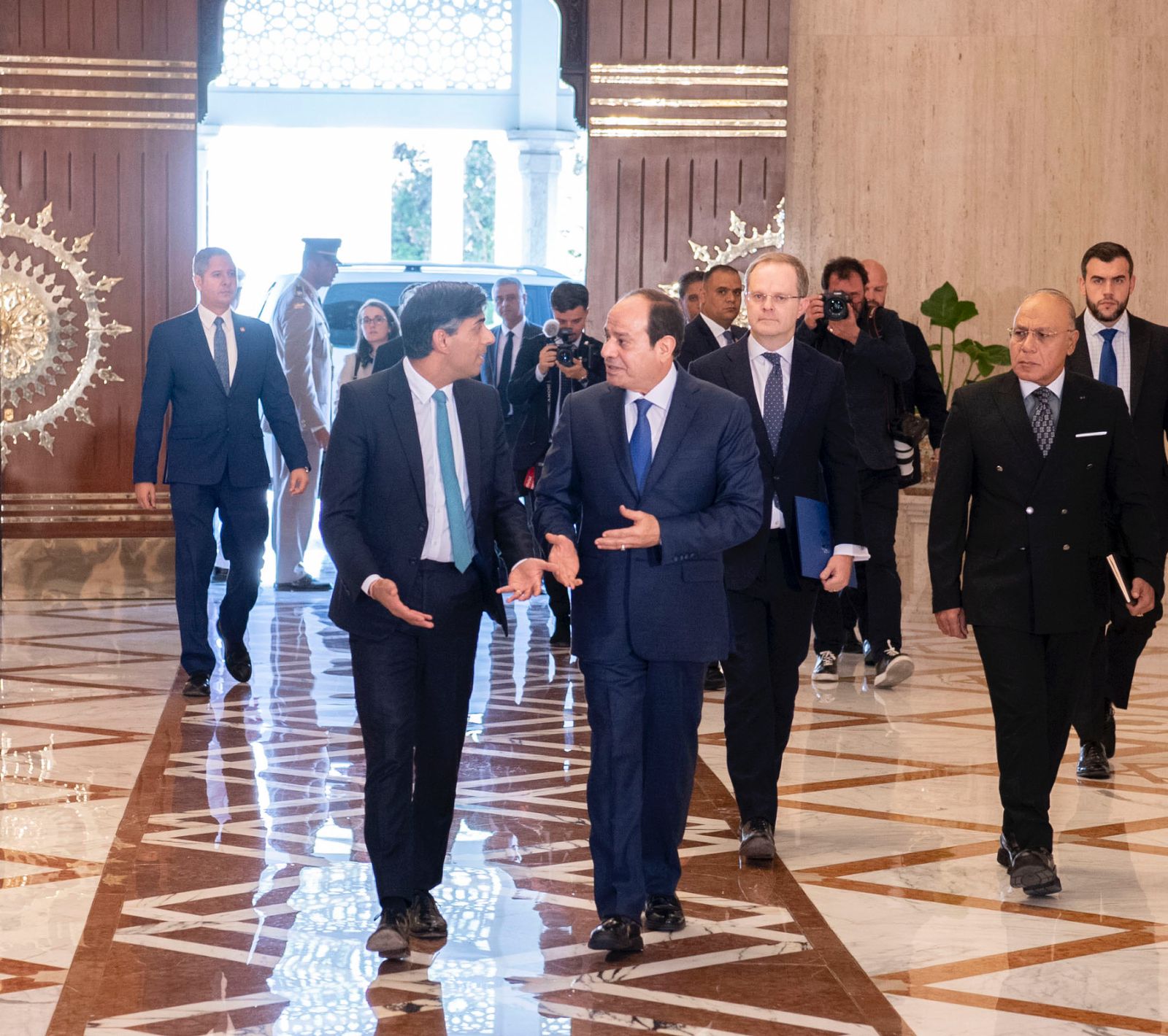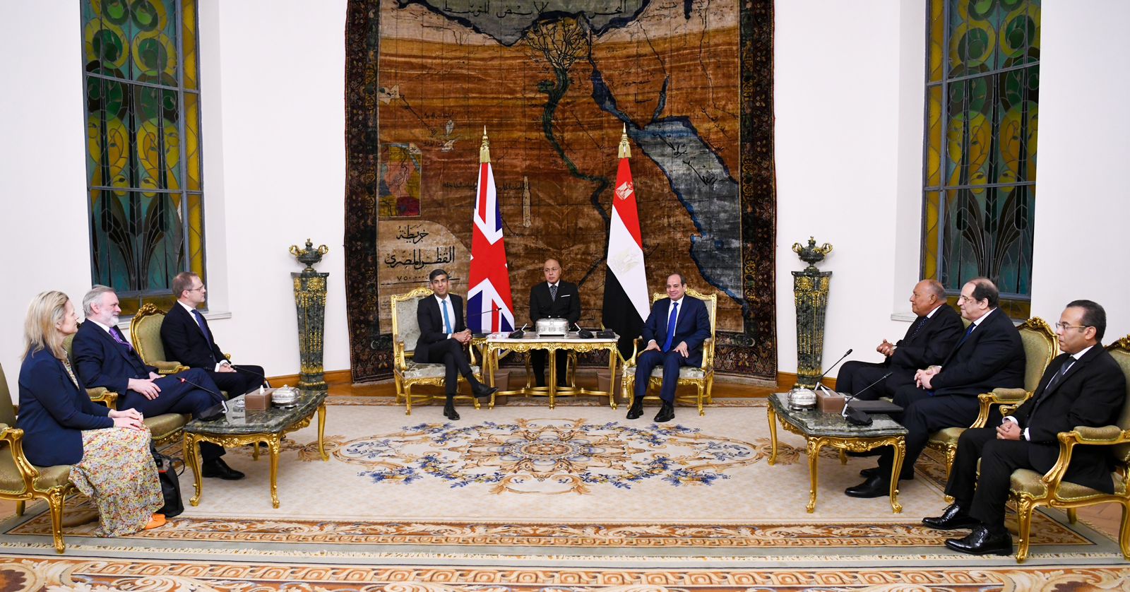 استقبل الرئيس عبد الفتاح السيسي، اليوم، بمقر رئاسة الجمهورية بمصر الجديدة قصر الاتحادية، رئيس الوزراء البريطاني ريشي سوناك، وحذر الرئيس السيسي من انزلاق المنطقة إلى حرب إقليمية يكون تأثيرها مدمر.