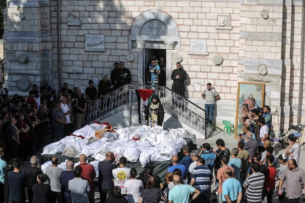 تشييع جثامين شهداء مجزرة كنيسة الروم الأرثوذكس في غزة (صور)