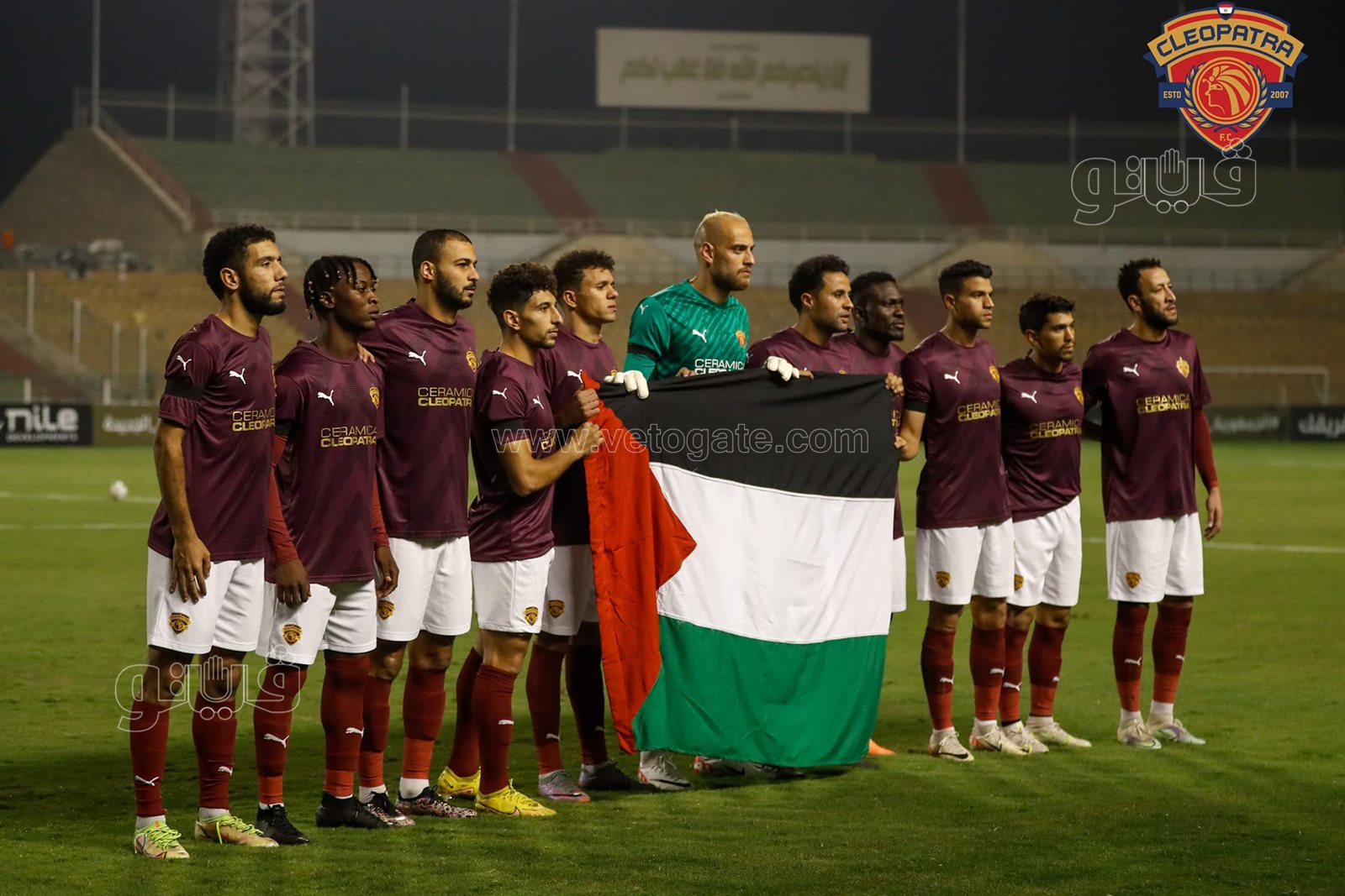الدوري المصري، حرص لاعبو فريق سيراميكا كليوباترا على دعم القضية الفلسطينية، بحمل علم فلسطين خلال مباراة الفريق، مساء اليوم الجمعة، أمام نظيره الداخلية، على ملعب المقاولون العرب، في الجولة الرابعة من بطولة الدوري المصري الممتاز.