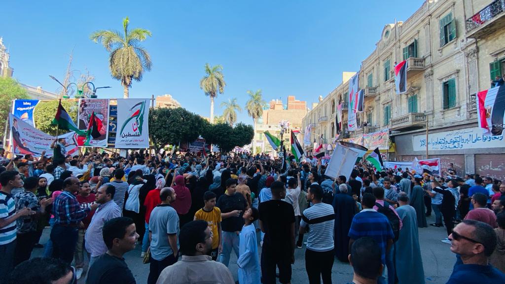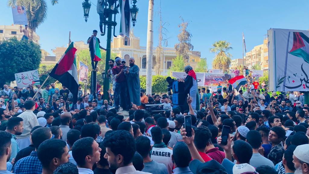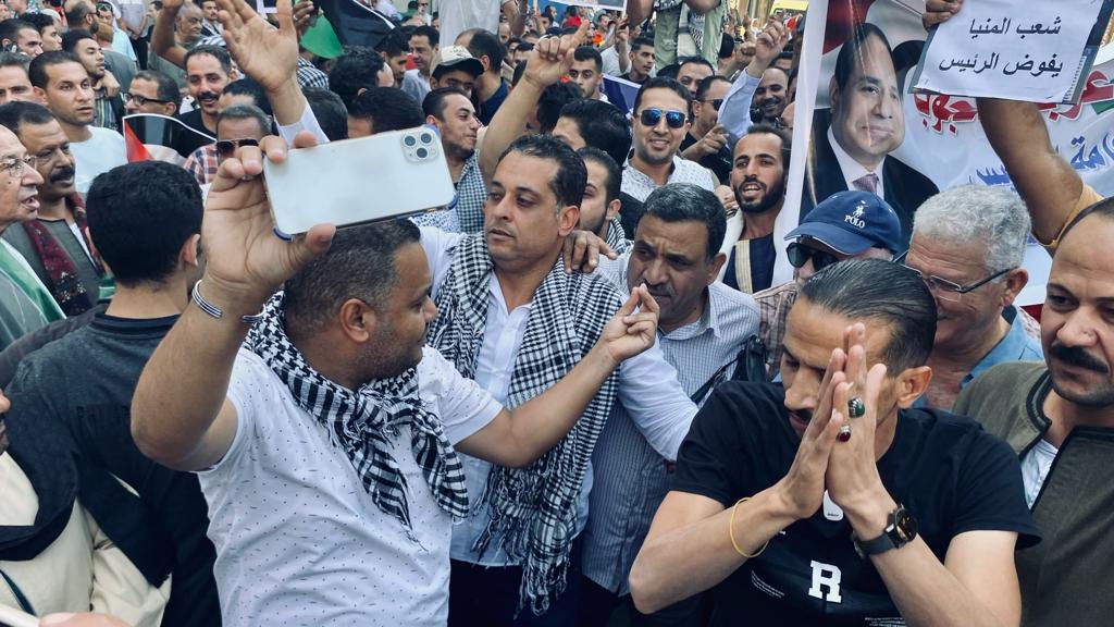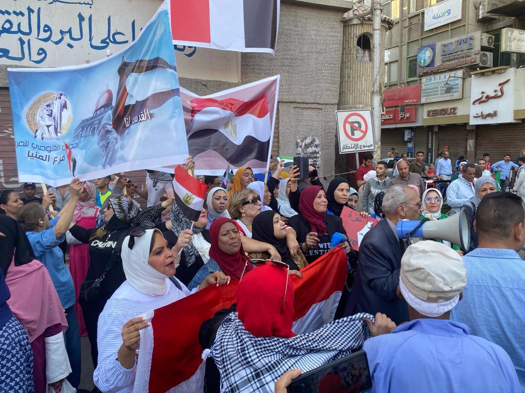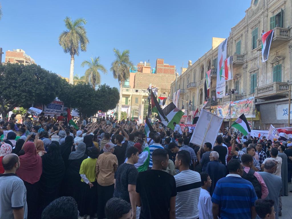 وخرج أهالي محافظة المنيا، في مسيرات حاشدة إلى ميدان بالاس والشوارع المجاورة من أجل دعم فلسطين والتنديد بالغارات الإسرائيلية على غزة.