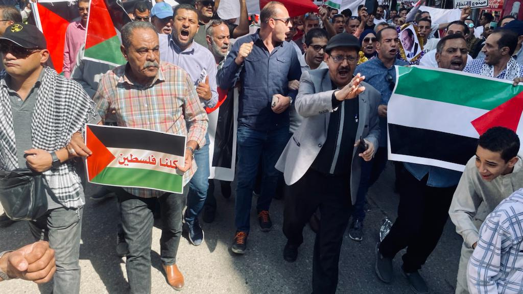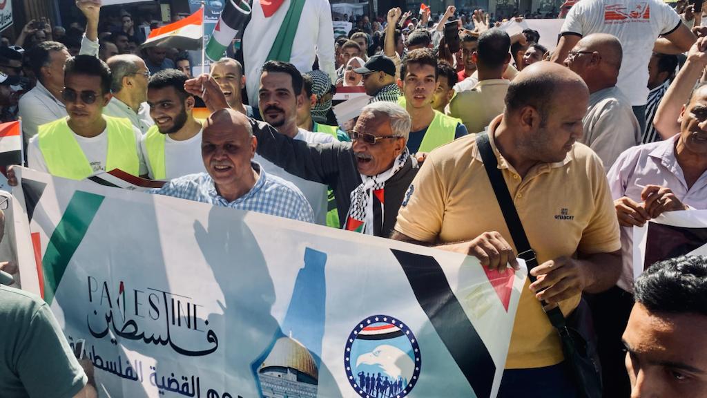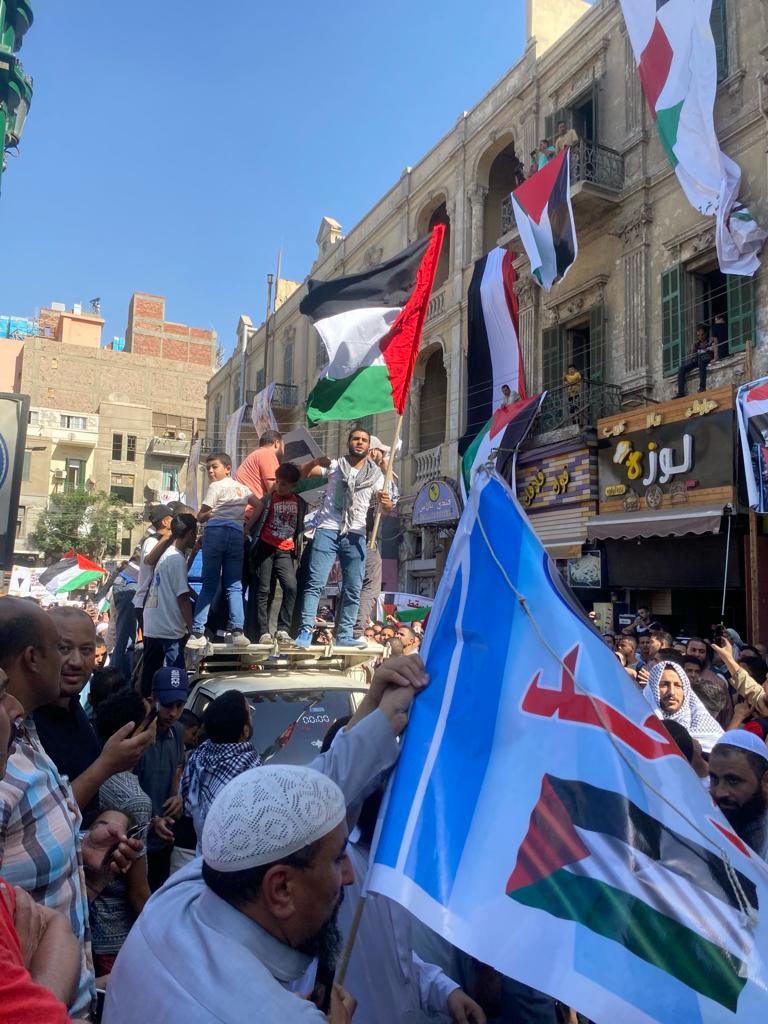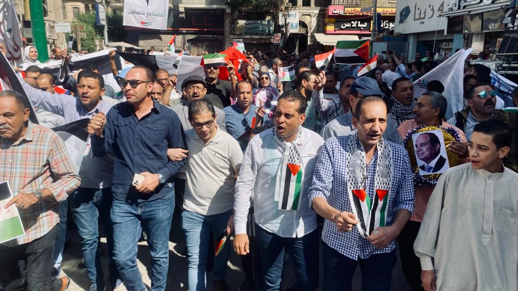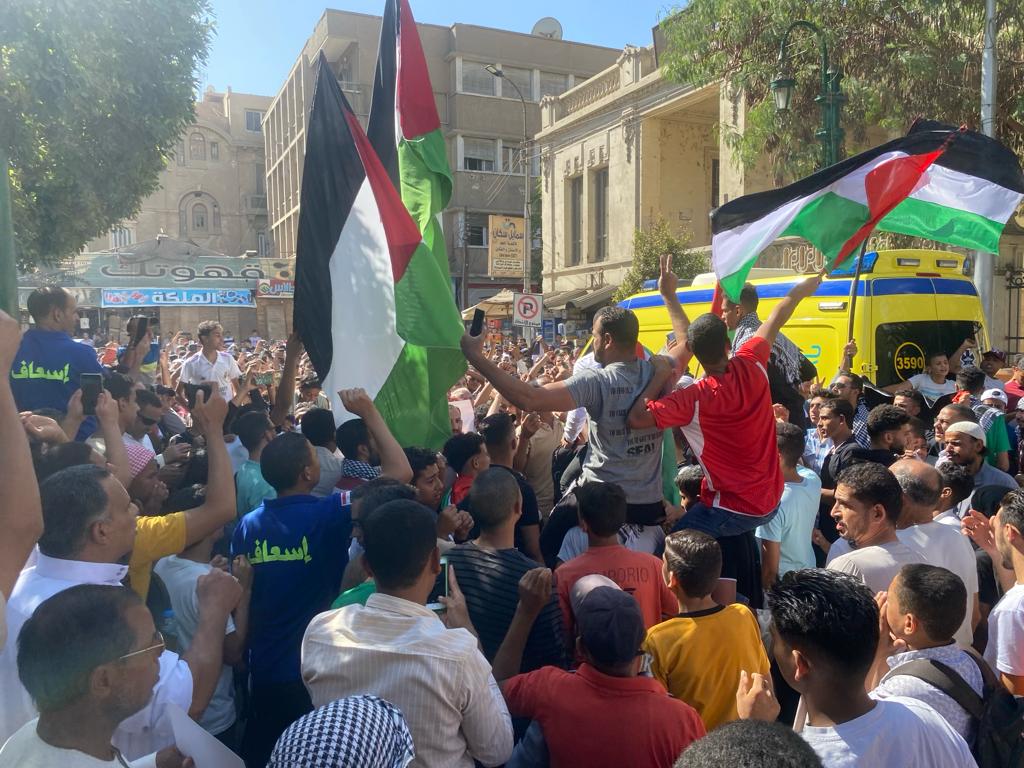 وخرج أهالي محافظة المنيا، في مسيرات حاشدة إلى ميدان بالاس والشوارع المجاورة من أجل دعم فلسطين والتنديد بالغارات الإسرائيلية على غزة.