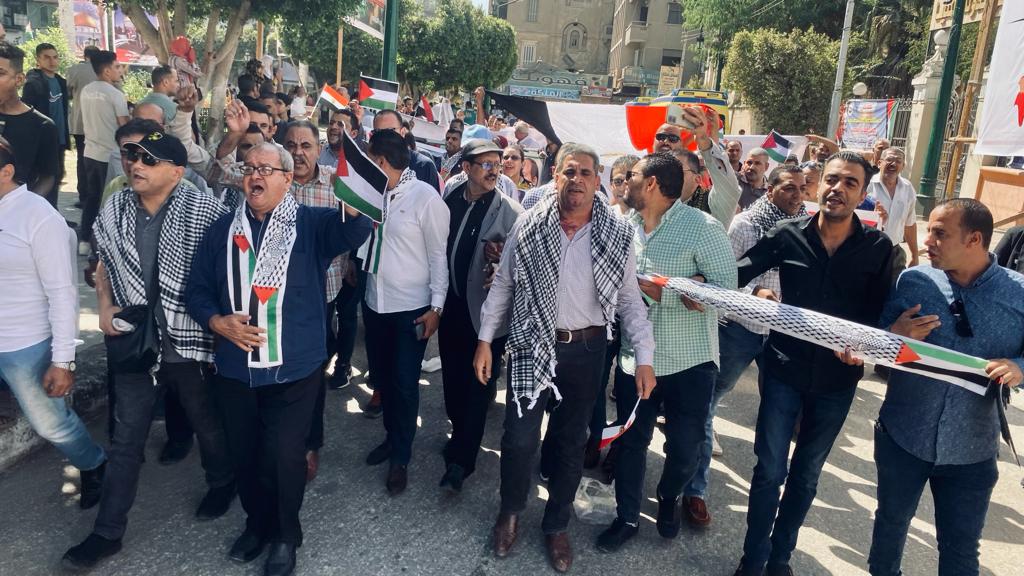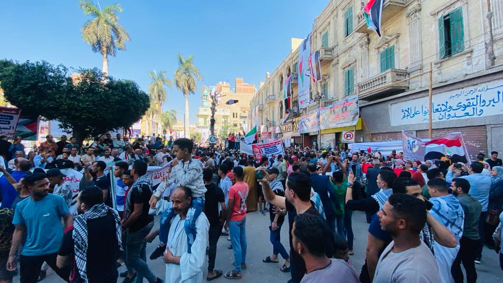 وشارك الآلاف من أهالي محافظة المنيا، في مسيرات دعم فلسطين بعد نهاية صلاة الظهر، خاصة عقب صلاة أهالي المحافظة أداء صلاة الغائب على شهداء الأقصى المحتل.
