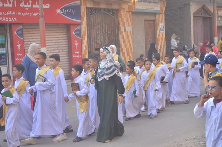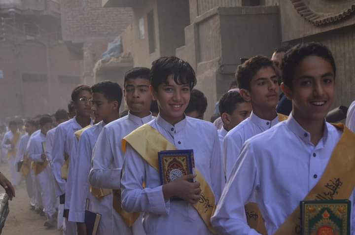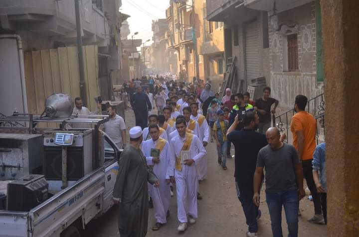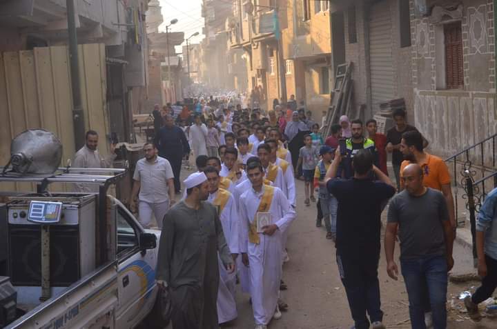 قرية تزف 200 طالب وطالبة من حفظة القرآن في شوارعها بالغربية