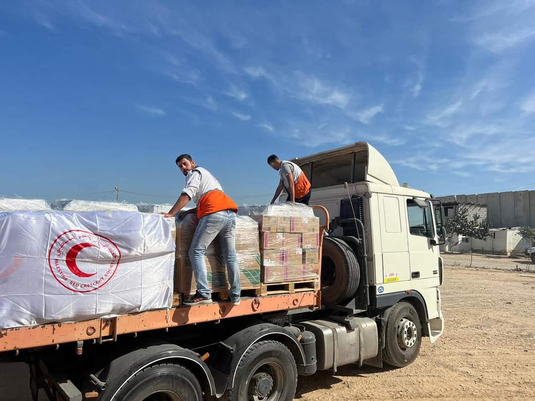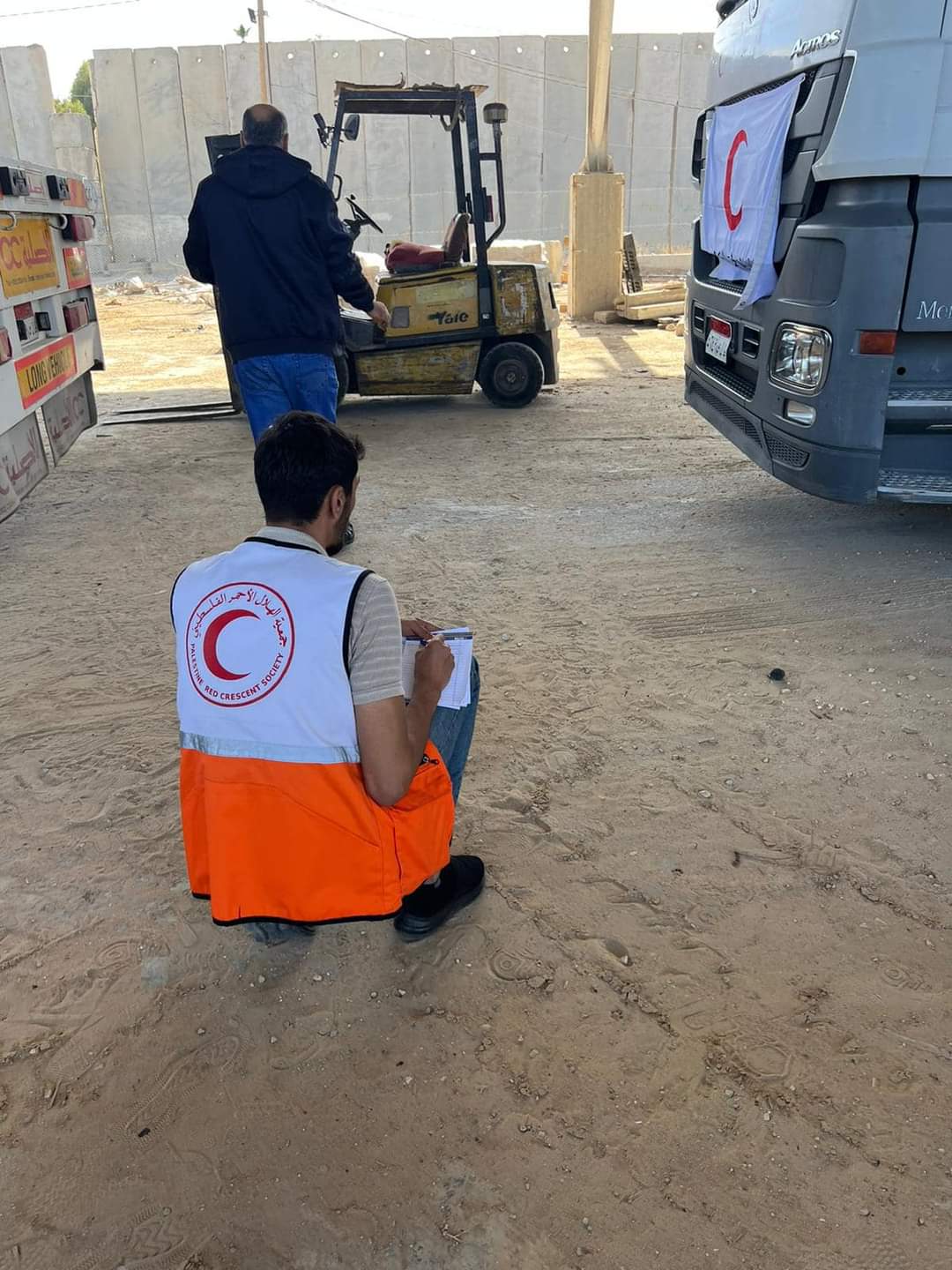 الهلال الأحمر الفلسطيني يستقبل المساعدات الإغاثية تمهيدا لتوزيعها داخل قطاع غزة