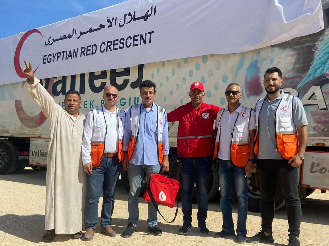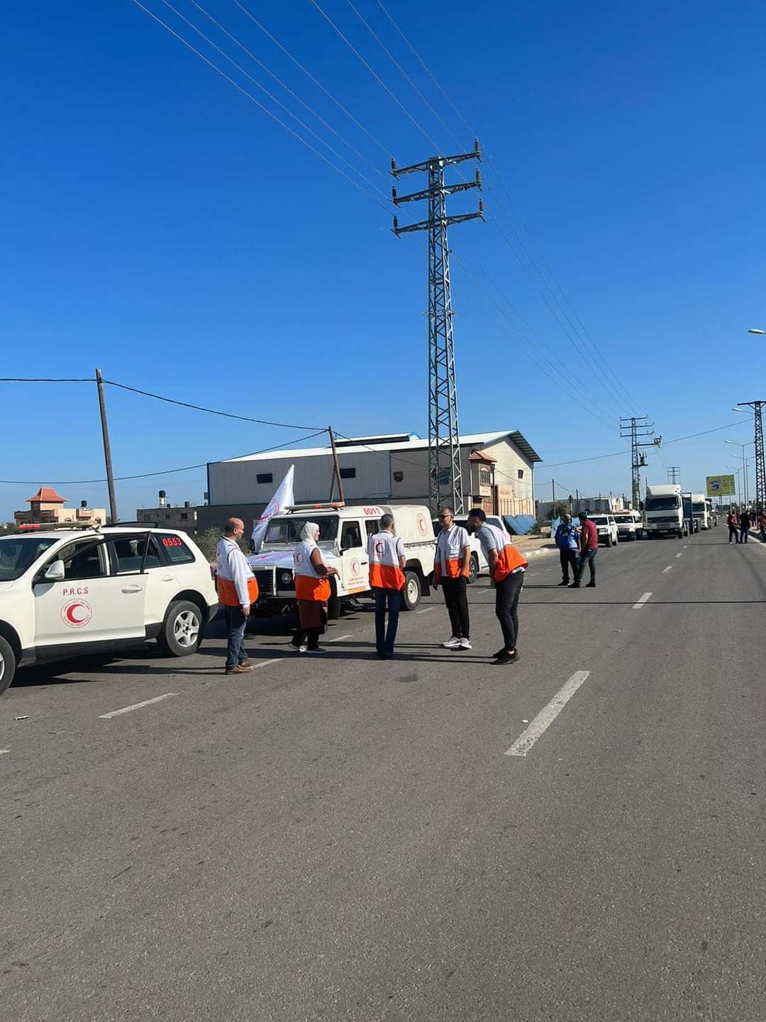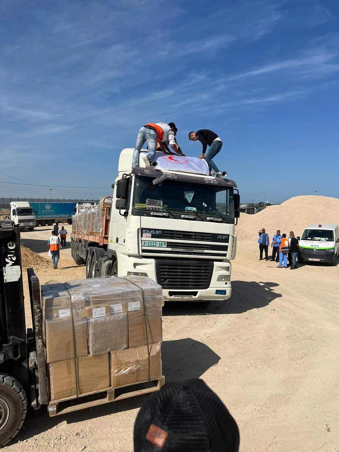 استقبل الهلال الأحمر الفلسطيني المساعدات الإغاثية بعد عبورها معبر رفح البري تمهيدا لتوزيعها داخل قطاع غزة.