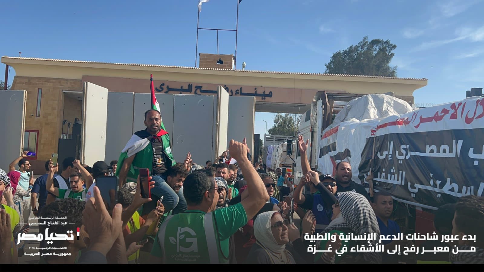 أكدت الحملة الرسمية للمرشح الرئاسي عبد الفتاح السيسي، أن عبور شاحنات الدعم الانسانية والطبية إلى قطاع غزة، تضامنًا مع أشقائنا في غزة هو رسالة قوية مفادها أن مصر هي عماد السلام.