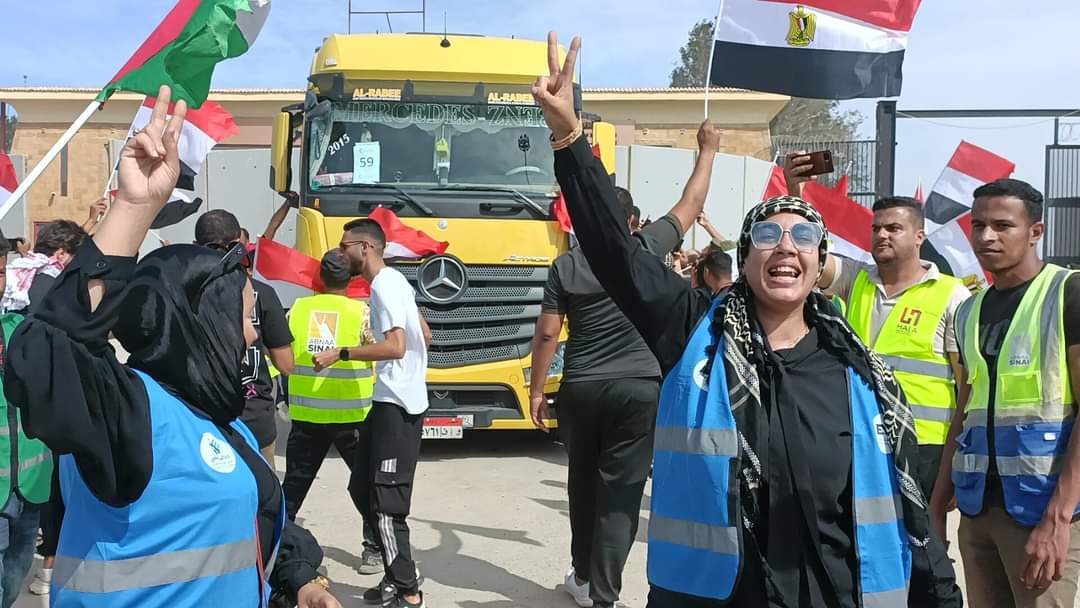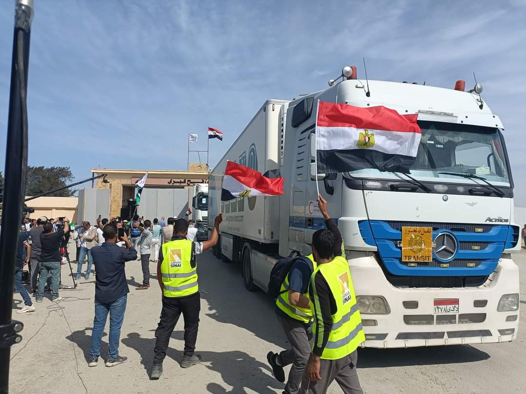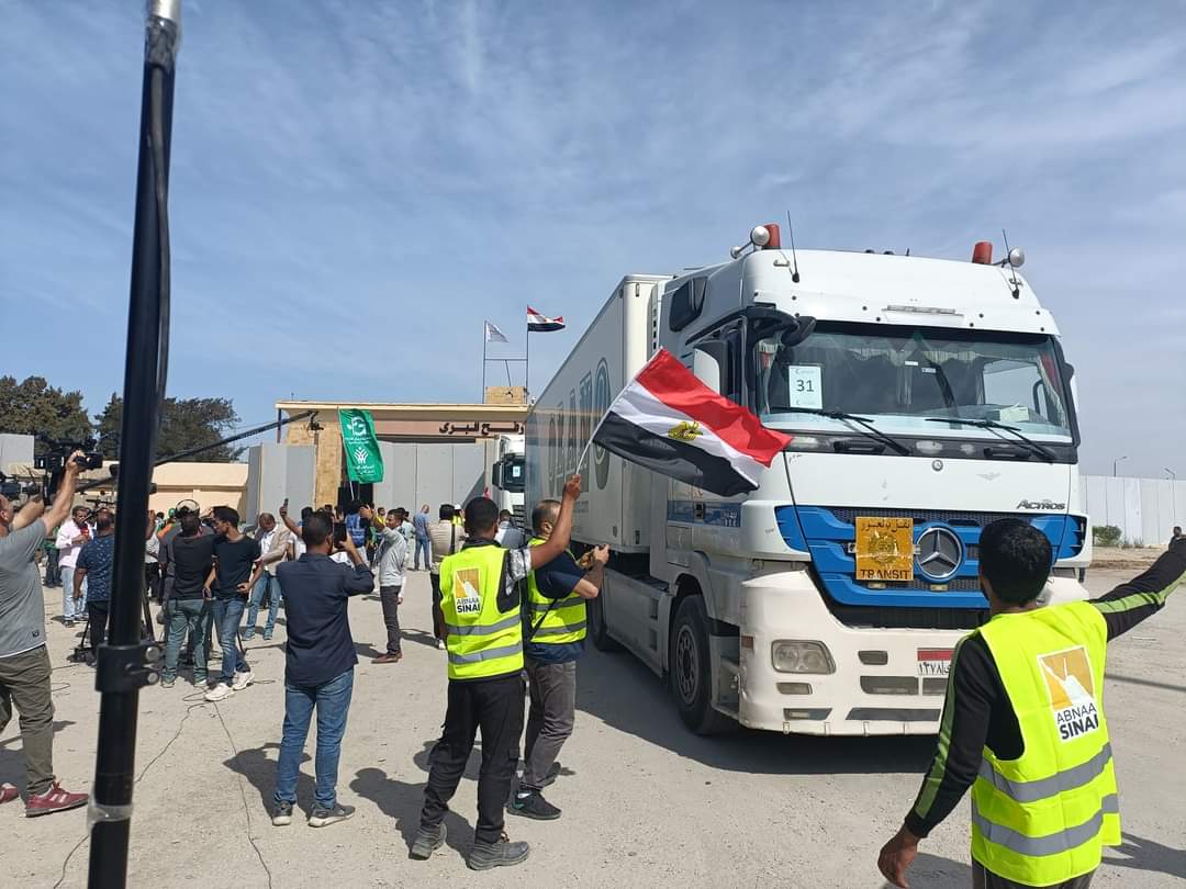 عاد أول فوج من الشاحنات المصرية بعد تفريغ حمولتها بالجانب الفلسطيني من معبر رفح وتسليم المساعدات إلى الهلال الأحمر الفلسطيني.
