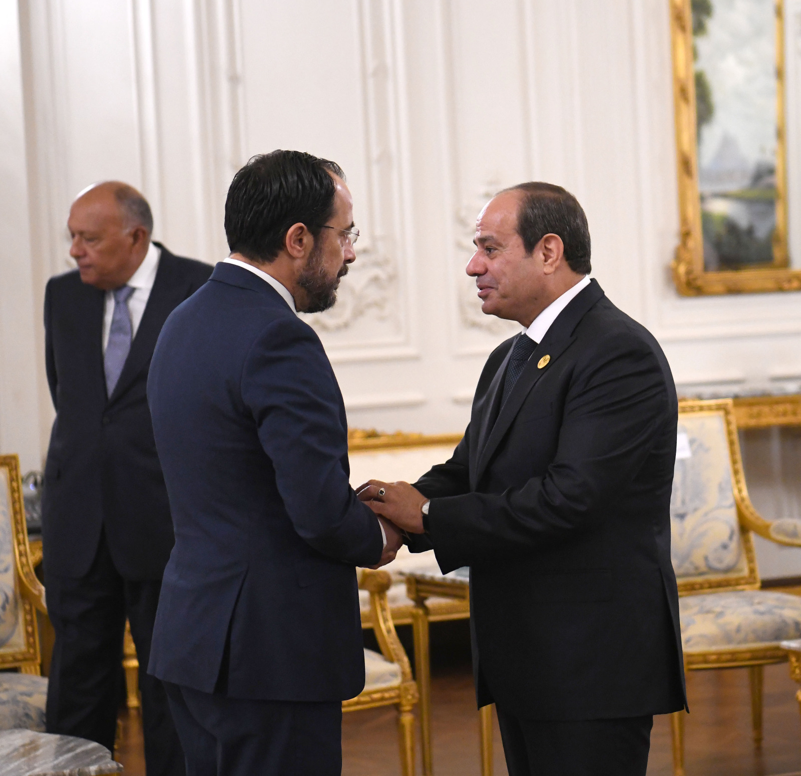 واستقبل الرئيس عبد الفتاح السيسي قادة وزعماء العالم المشاركين في قمة القاهرة للسلام لبحث مستجدات التصعيد العسكري الراهن في قطاع غزة، وجهود احتواء الموقف.