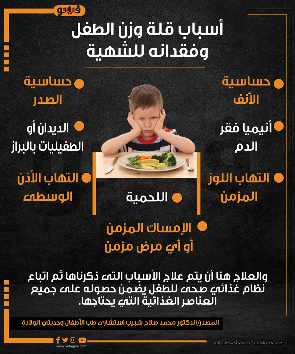أسباب قلة وزن الطفل وفقدانه للشهية(انفوجراف) الأربعاء 25/أكتوبر/2023 - 10:16 م 10/25/2023 10:16:14 PM أسباب قلة وزن الطفل، فيتو هبة شعيب شارك طباعة 18 حجم الخط شارك طباعة قلة وزن الطفل أسباب قلة وزن الطفل فقدان الشهية الدكتور محمد صلاح شبيب صحة الصحة