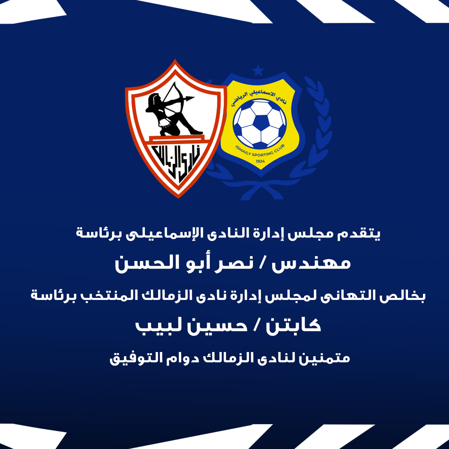 وتمني نادي الإسماعيلي كل التوفيق للقلعة البيضاء ومجلس إداراته في الفترة المقبلة.