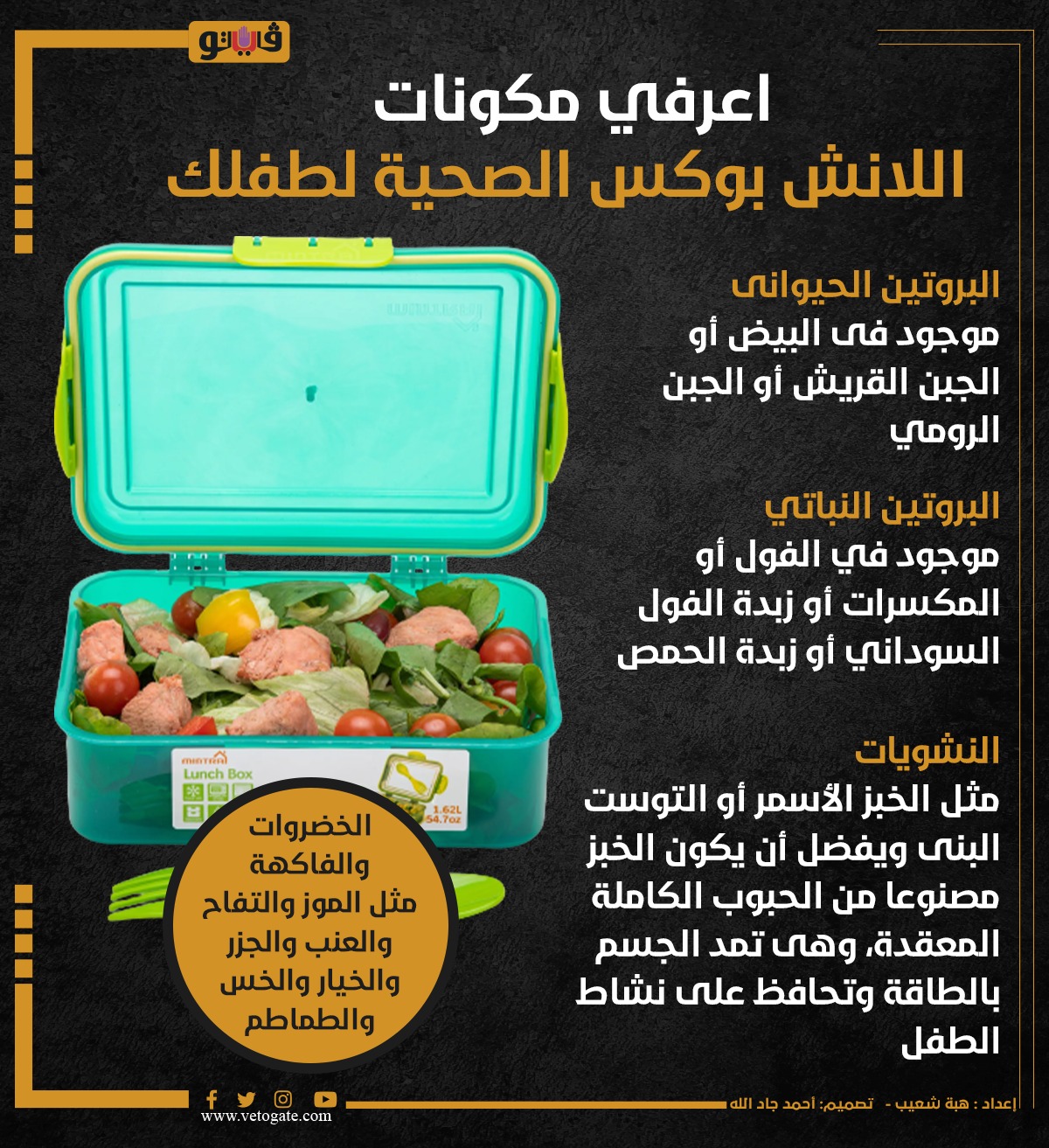 اعرفي مكونات اللانش بوكس الصحية لطفلك (إنفوجراف) الثلاثاء 24/أكتوبر/2023 - 02:12 م 10/24/2023 2:12:10 PM اللانش بوكس، فيتو هبة شعيب شارك طباعة 18 حجم الخط شارك طباعة اللانش بوكس تحضير اللانش بوكس مكونات اللانش بوكس الصحية لطفلك الدكتور تامر عبد الحميد صحة الصحة