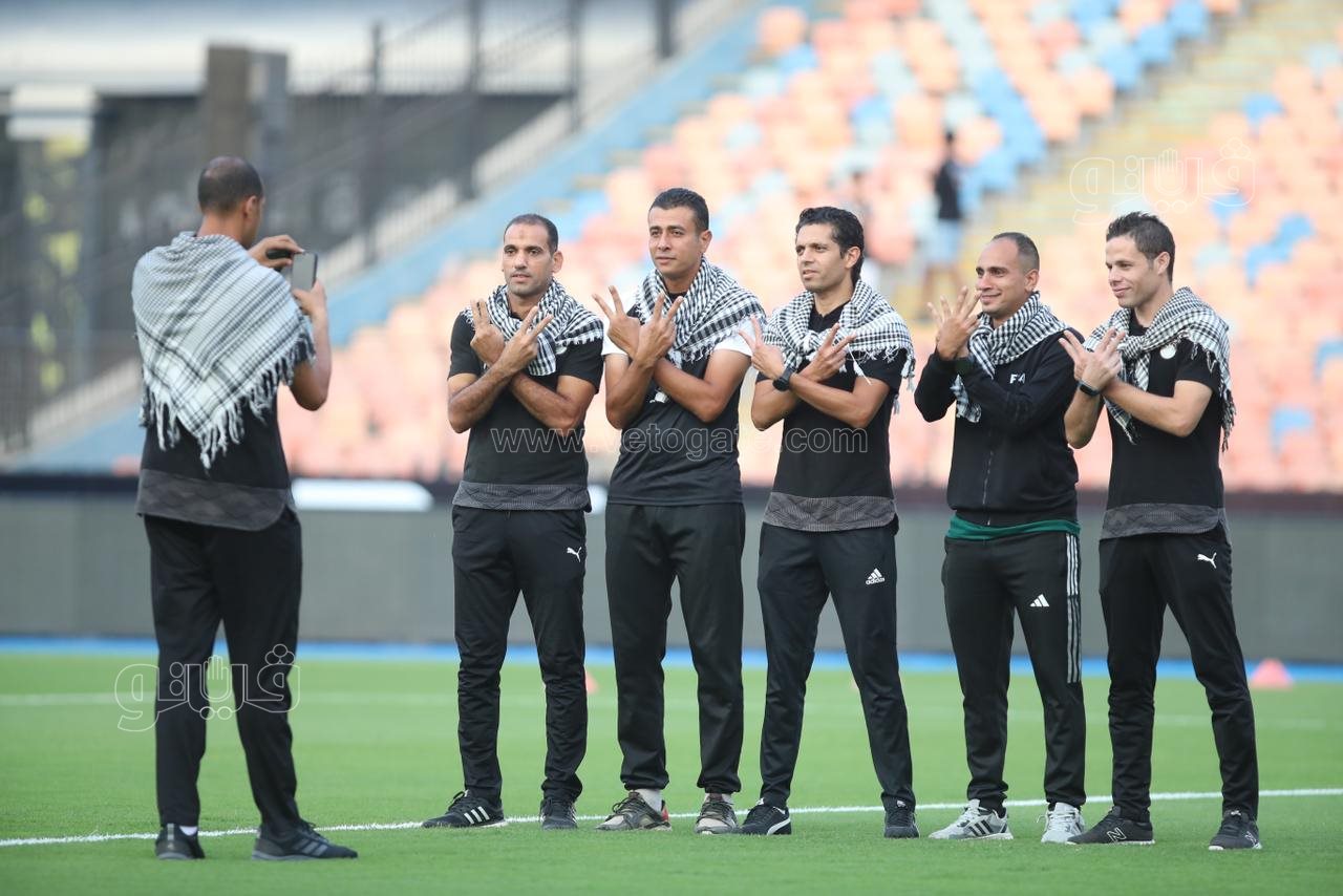 طاقم تحكيم الزمالك وسموحة يدعم فلسطين قبل المباراة (صور)