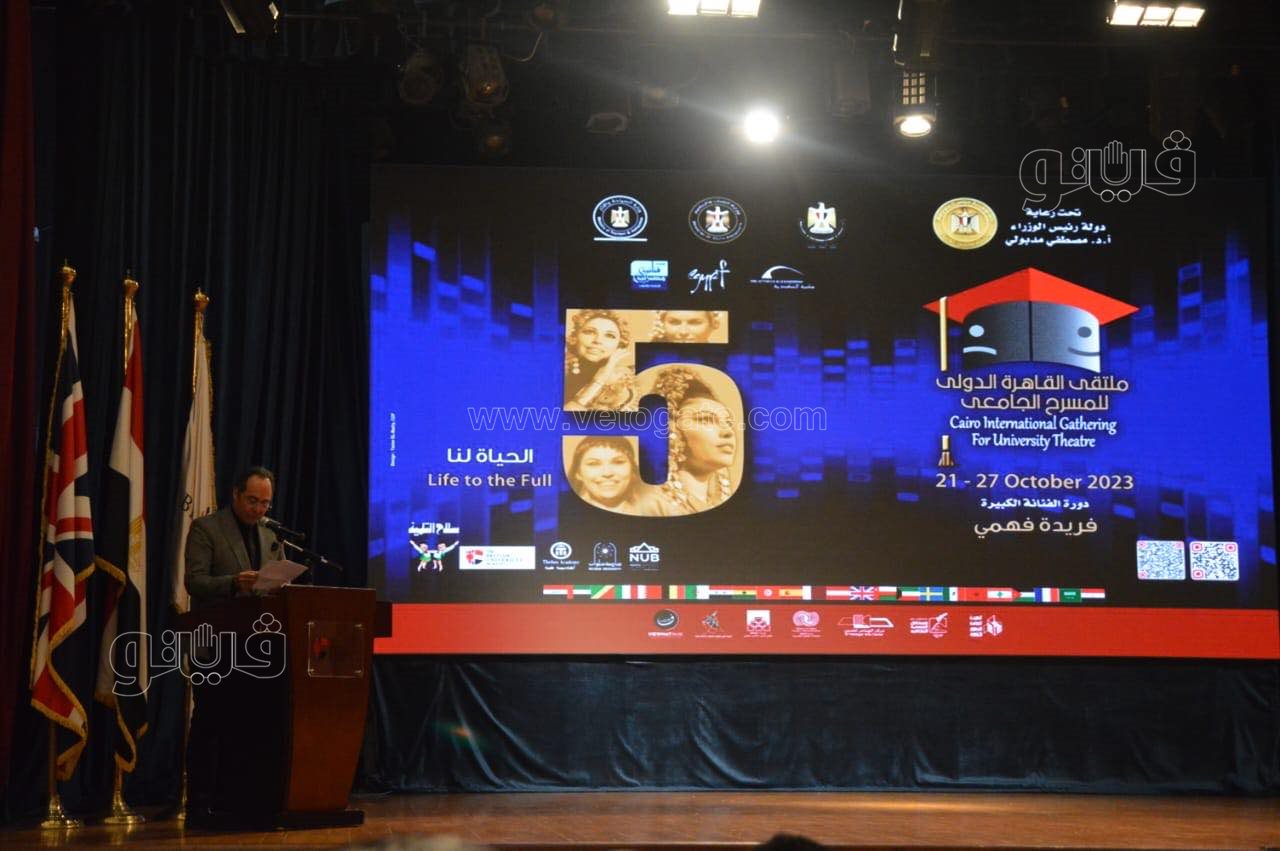 جاء ذلك خلال افتتاح الدورة الخامسة من ملتقى القاهرة الدولي للمسرح الجامعي، على خشبة مسرح الجامعة البريطانية بالقاهرة، بحضور نخبة من الفنانين والمسرحيين المصريين والعرب والأجانب.