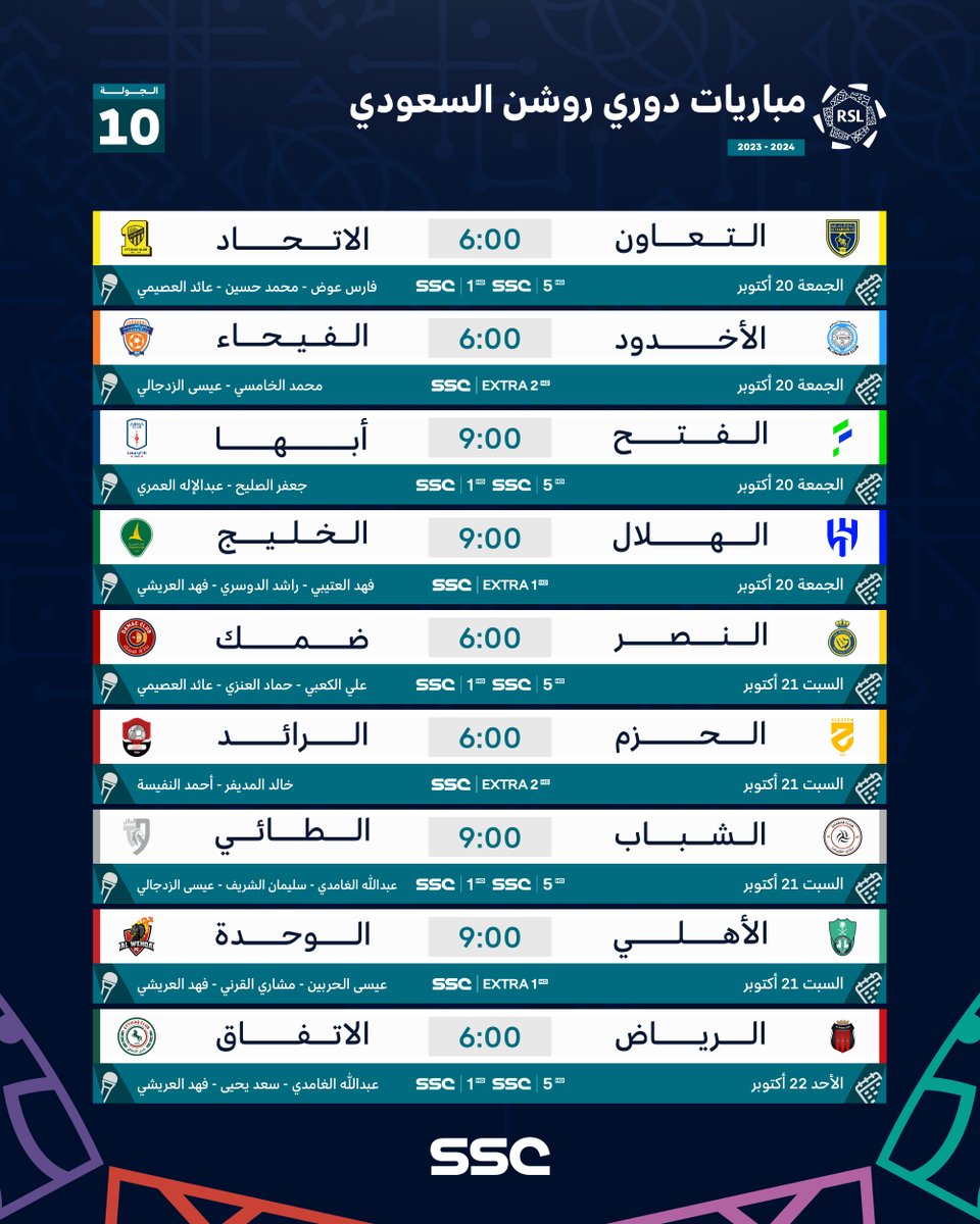 وتأتي مباريات الجولة العاشرة كالتالي..