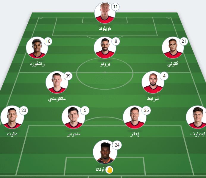 خط الهجوم: أنتوني، راشفورد، هويلوند.