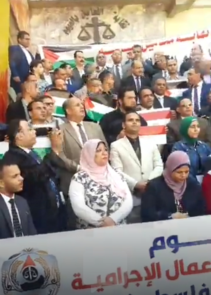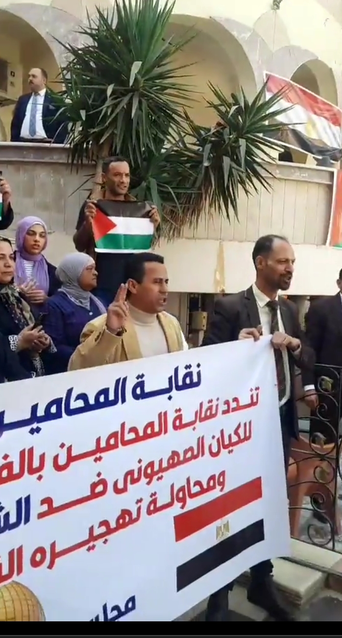 وقد نظمت نقابات المحامين الفرعية في كل محافظات ومدن مصر وقفة تضامنًا مع الشعب الفلسطيني ضد العدوان الإسرائيلي الغاشم الذي استهدف الأطفال والنساء والشيوخ في غزة وارتكب العديد من المجازر التي راح ضحيتها المئات من الأطفال الأبرياء وآخرها قصف المستشفى المعمداني الذي راح ضحيته نحو 500 شهيدًا أغلبهم من الأطفال والنساء وكذلك كنيسة الروم الأرثوذكس.