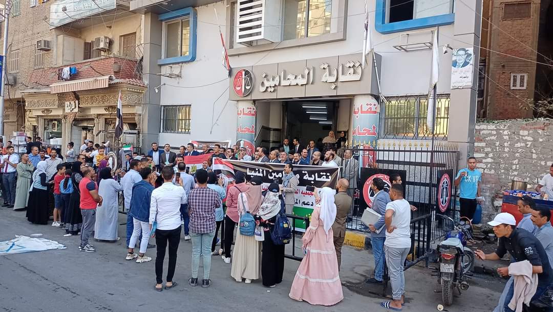 وفي وقت سابق أصدرت النقابة العامة لمحامين المنيا بيانًا اكشفت خلاله أن الوقفة التضامنية تأتي بناءً على قرار مجلس نقابة المحامين، الذي اتخذه خلال اجتماعه الأخير، والذي عقد الأربعاء الماضي الموافق 18 أكتوبر، ويشارك فيها جميع النقابات الفرعية بجميع محاكم الجمهورية، وذلك بشأن الاعتداءات التي تقوم بها قوات الاحتلال الصهيوني الغاشم، ضد الأشقاء في غزة.