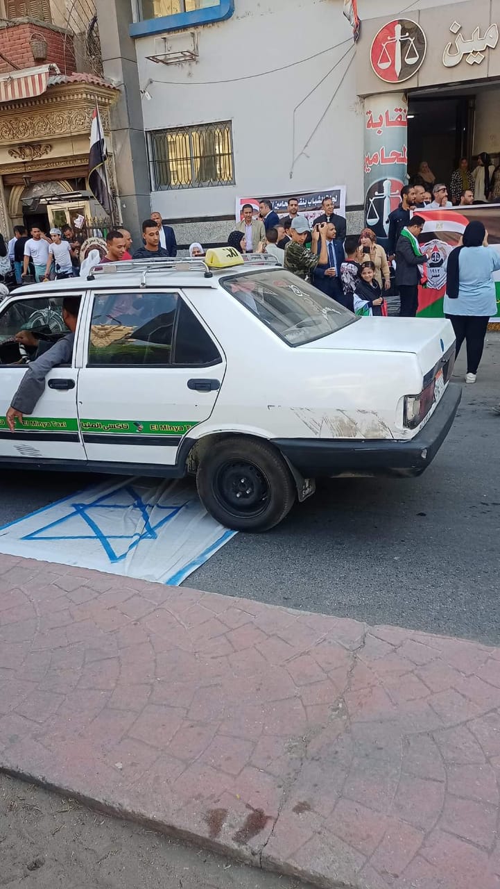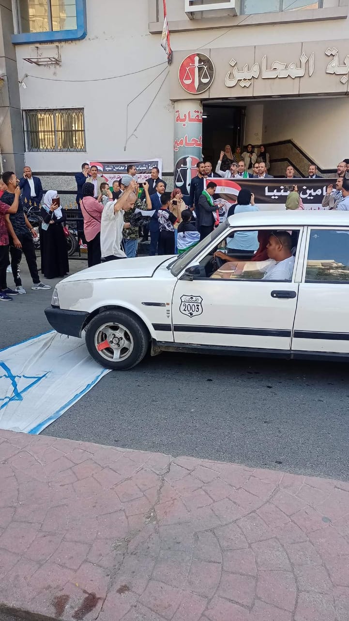 محامو المنيا يفرشون الأرض بأعلام إسرائيل خلال وقفة تضامنية مع الشعب الفلسطيني (صور)
