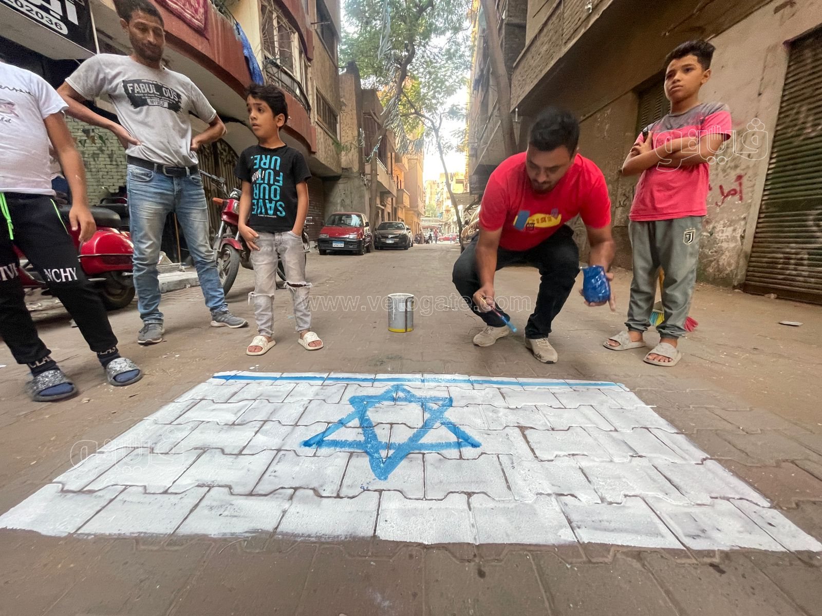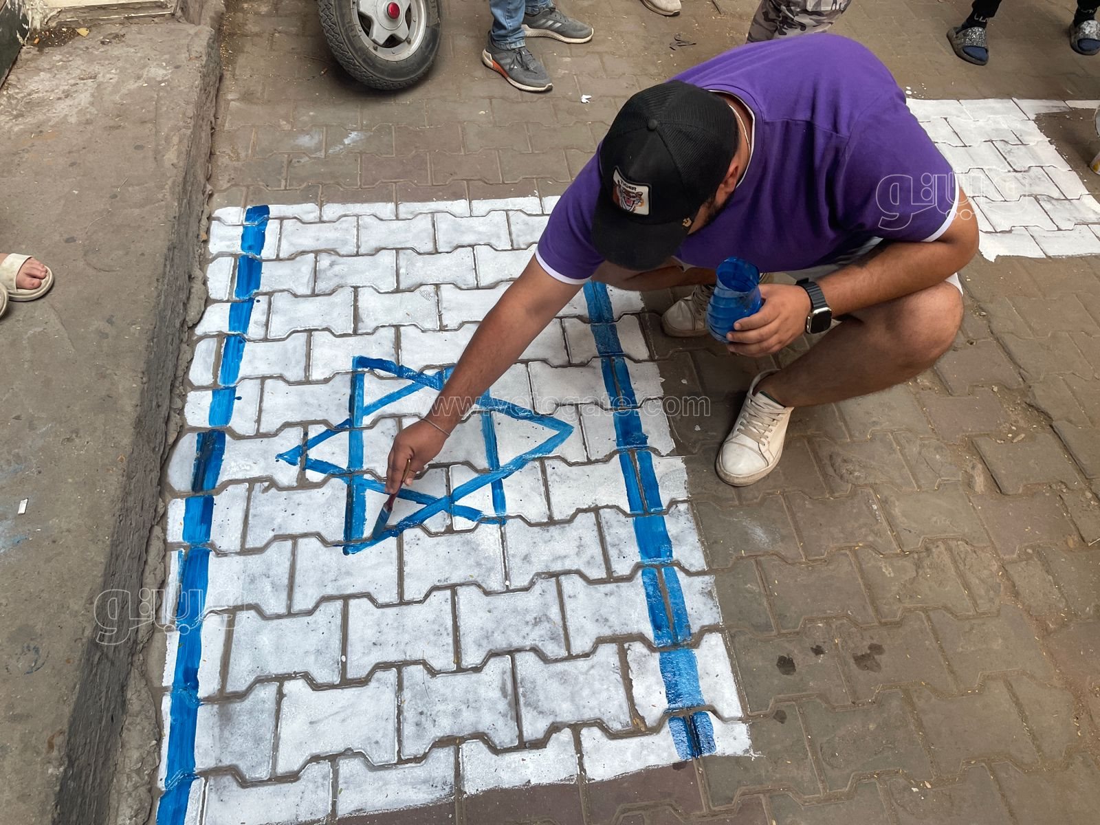 وفي جولة ميدانية لها رصدت عدسة " فيتو" بعض من هؤلاء الشباب وتحديدًا في محافظة الجيزة، وهم يرسمون علم الدولة الإسرائيلية في منتصف شوارع المحافظة.