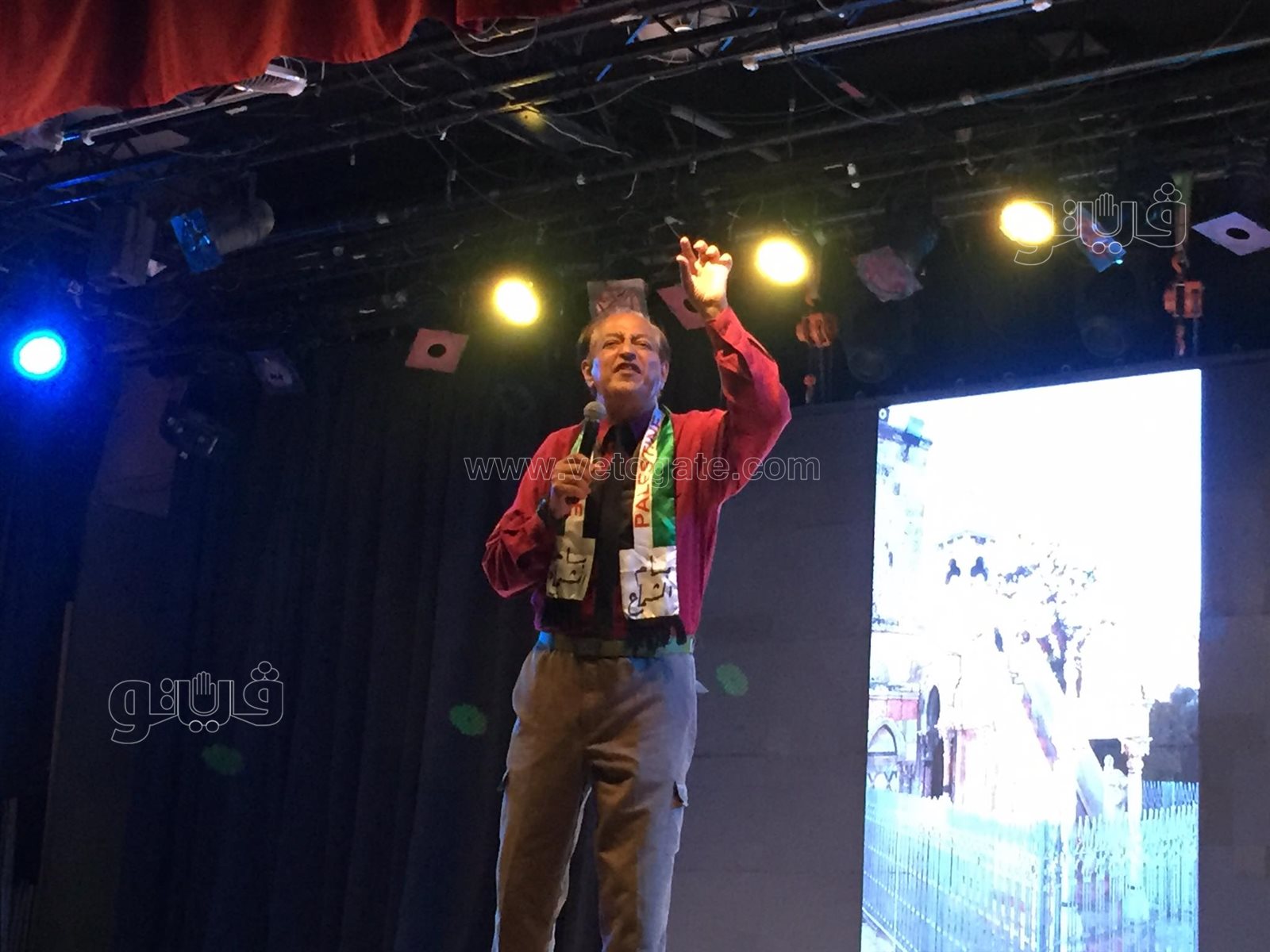 وظهر بسام الشماع في الندوة بكوفية تحمل علم "فلسطين"، وذلك تزامنا مع ما يحدث على أرض فلسطين من انتهاكات للإنسانية على يد الكيان الصهيوني.