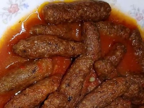 - ونترك الصلصة تتسبك قليلا، ثم نضيف الكفتة.