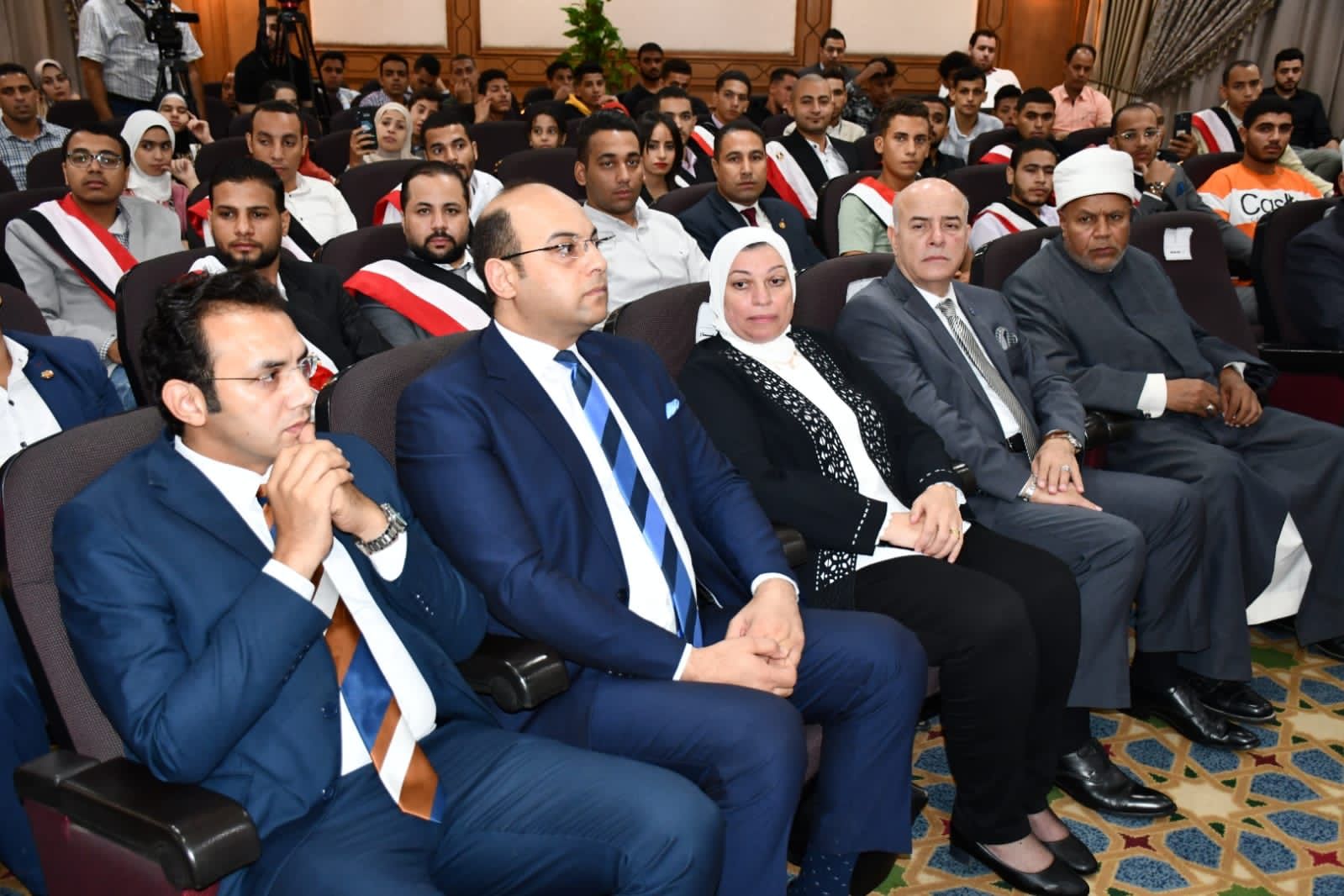 وأضاف في كلمته: "نحن نقف جميعنا خلف وطننا الحبيب والذي نتكاتف فيه جميعا للمحافظة عليه والدفاع عنه بكل الطرق والسبل الممكنة، ويجب أن يعلم الشباب أن مصر وطنا يعيش فينا ونعيش فيه نعمل على نهضته والبناء فيه من أجل مستقبل أفضل".