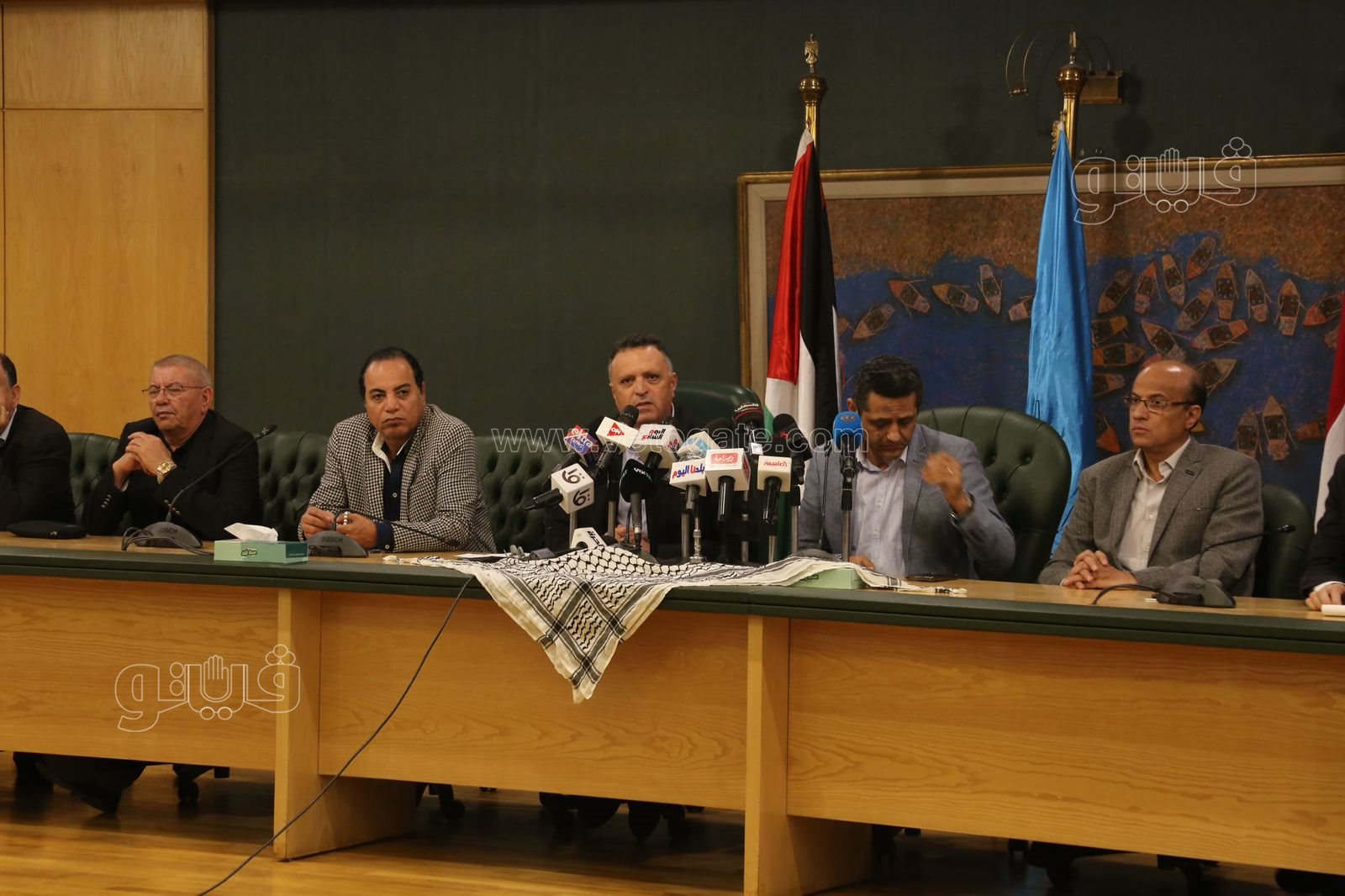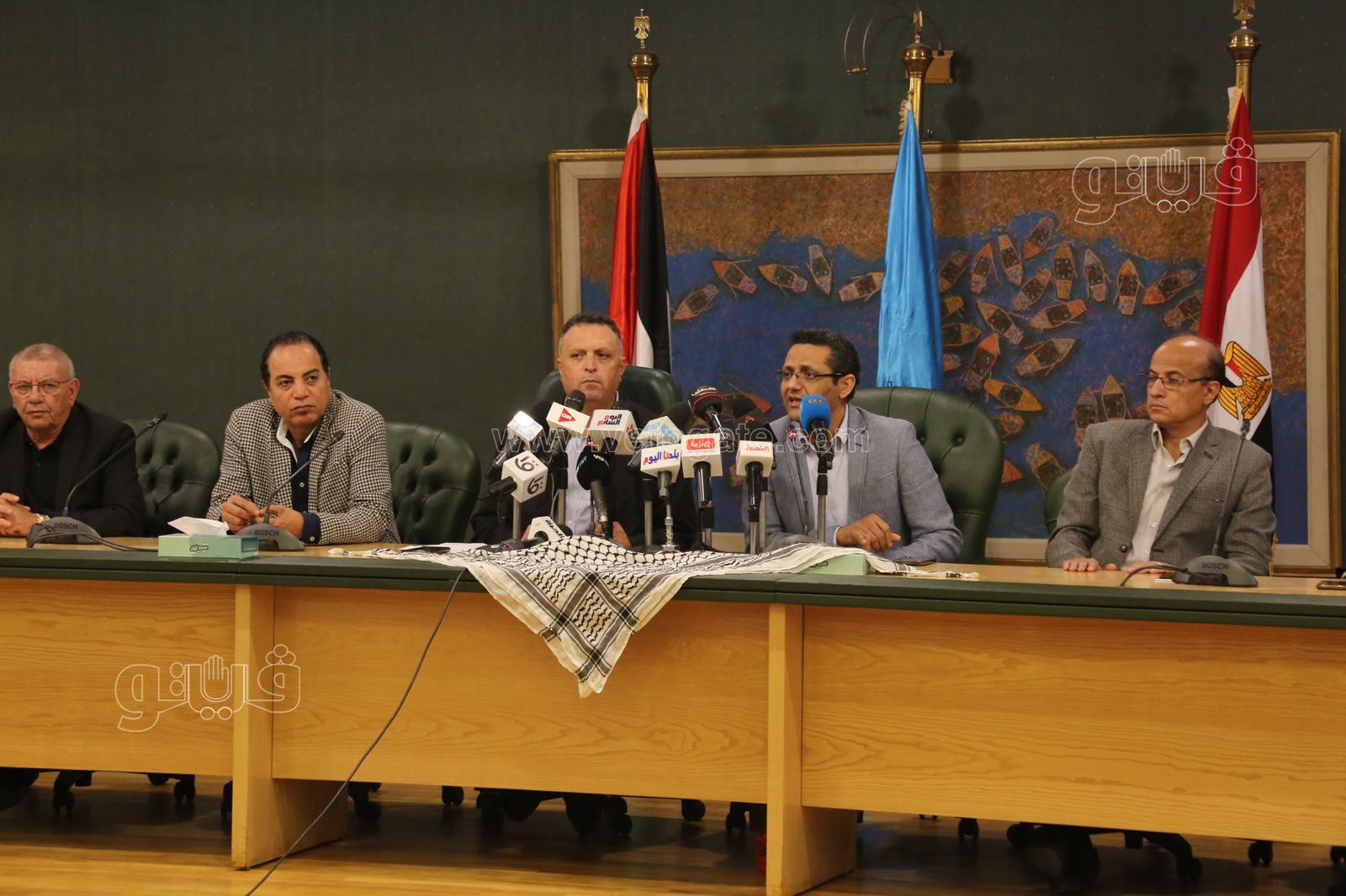رحب الكاتب الصحفي خالد البلشي، نقيب الصحفيين، بناصر أبو بكر، نقيب الصحفيين الفلسطينيين، بكل أعضاء اتحاد الصحفيين العرب المشاركين اليوم في المؤتمر الصحفي بنقابة الصحفيين.