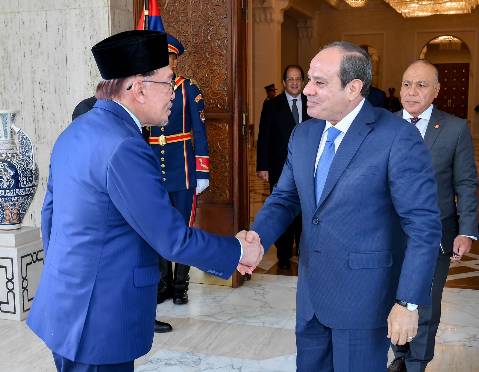 استقبل الرئيس عبد الفتاح السيسي، اليوم بقصر الاتحادية، أنور إبراهيم، رئيس وزراء جمهورية ماليزيا.
