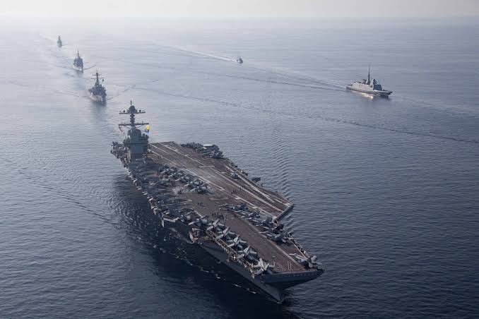 لقد أرسلت أمريكا حاملتين للطائرات هما چيرالد فورد والتي تم نشرها في المنطقة في أعقاب عملية طوفان الأقصى وهي تتمركز حاليًا في شرق البحر المتوسط أمام سواحل غزة على بعد حوالي ٣٠ كم من سواحل غزة ومعها مجموعاتها الهجومية وأيضًا حاملة الطائرات يو إس إس أيزنهاور ومجموعاتها الهجومية.