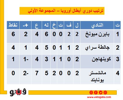 المجموعة الأولى: بايرن ميونخ، مانشستر يونايتد، كوبنهاجن، جالطة سراي.