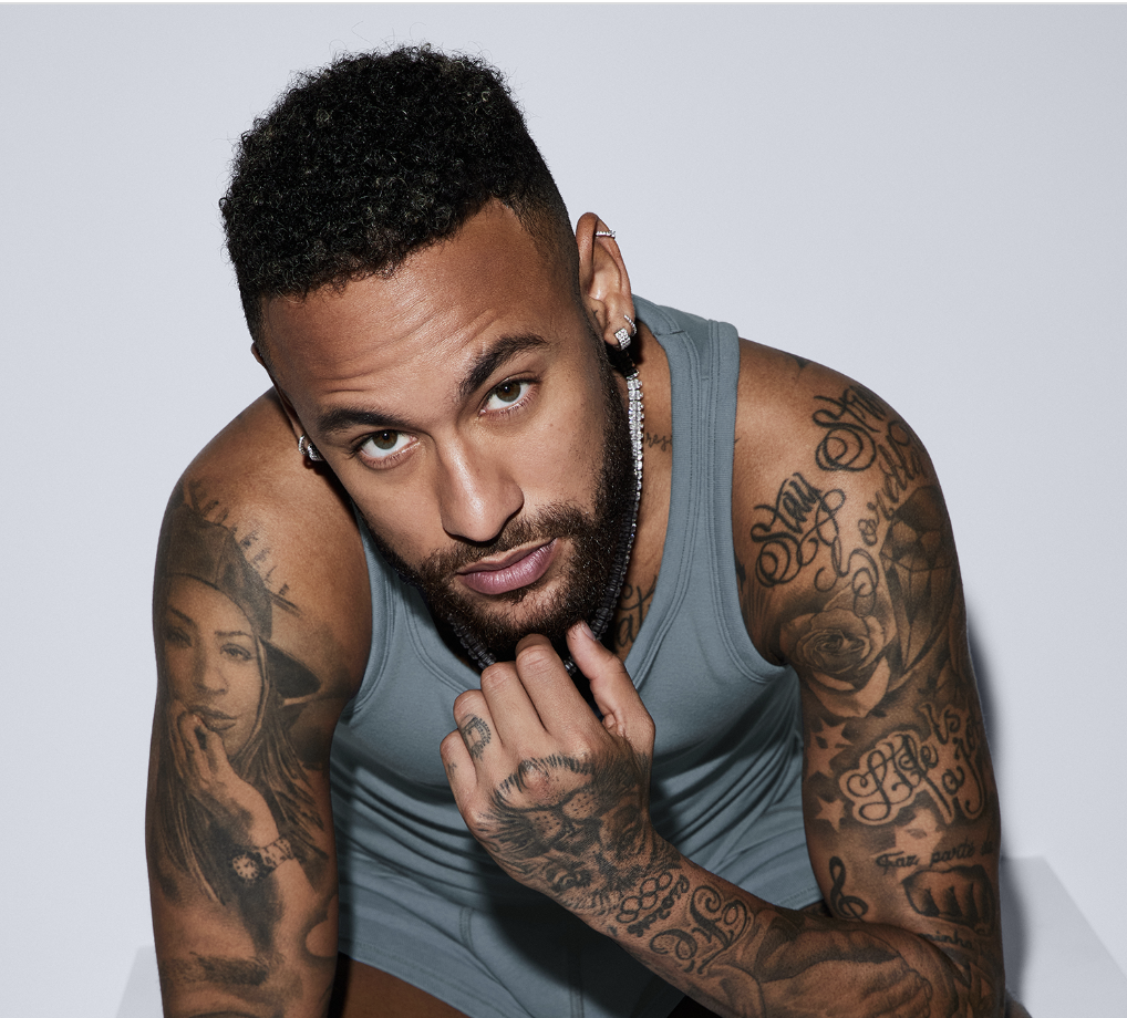 كيم كاردشيان، اختارت المليارديرة كيم كارداشيان، لاعب نادي الهلال السعودي، والنجم البرازيلي، نيمار، ونيك بوسا، لاعب كرة القدك الأمريكية، ليروجا للنسخة الرجالية من ماركة SKIMS، للملابس الداخلية.