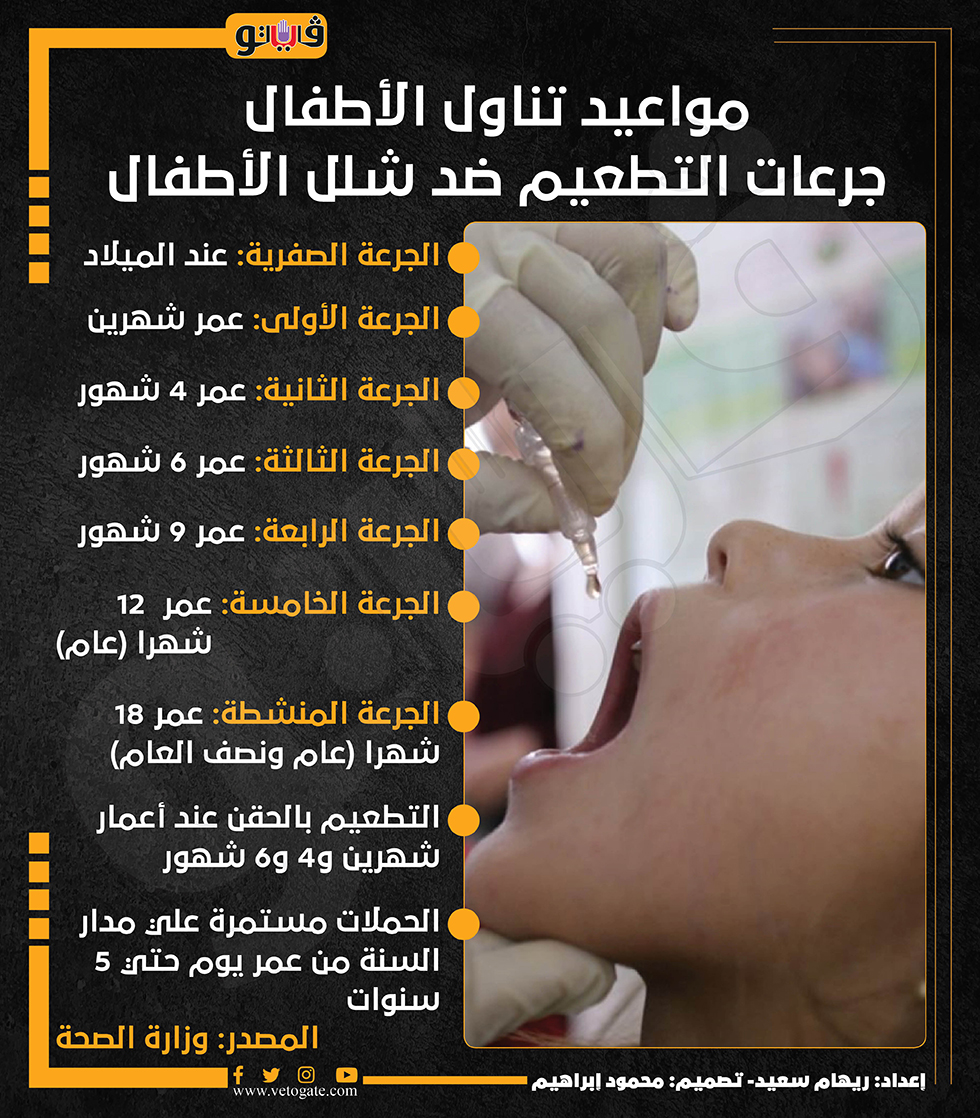 جدير بالذكر أن وزارة الصحة والسكان حذرت من مرض شلل الأطفال حيث يمكن أن يسبب الوفاة وهو مرض شديد العدوى ويصيب الأطفال من سن يوم حتى 5 سنوات.