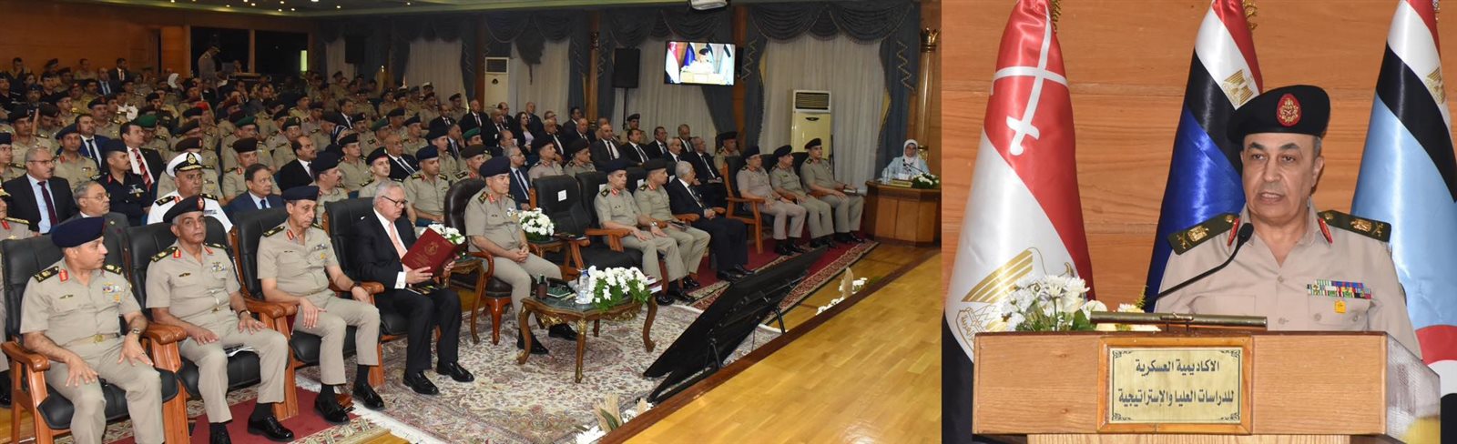 وألقى اللواء أركان حرب أشرف فارس مدير الأكاديمية العسكرية للدراسات العليا والإستراتيجية كلمة قدم خلالها الشكر للقيادة العامة للقوات المسلحة التى قدمت كافة أوجه الدعم والمساندة للارتقاء بالمستوى العلمى لدارسى الأكاديمية، مشيرًا إلى الجهود المبذولة والتعاون المستمر بين القوات المسلحة وجميع الأجهزة المعنية لزيادة الوعى المجتمعى لما له من أهمية فى خلق نسيج وطنى متكامل داخل الدولة المصرية.