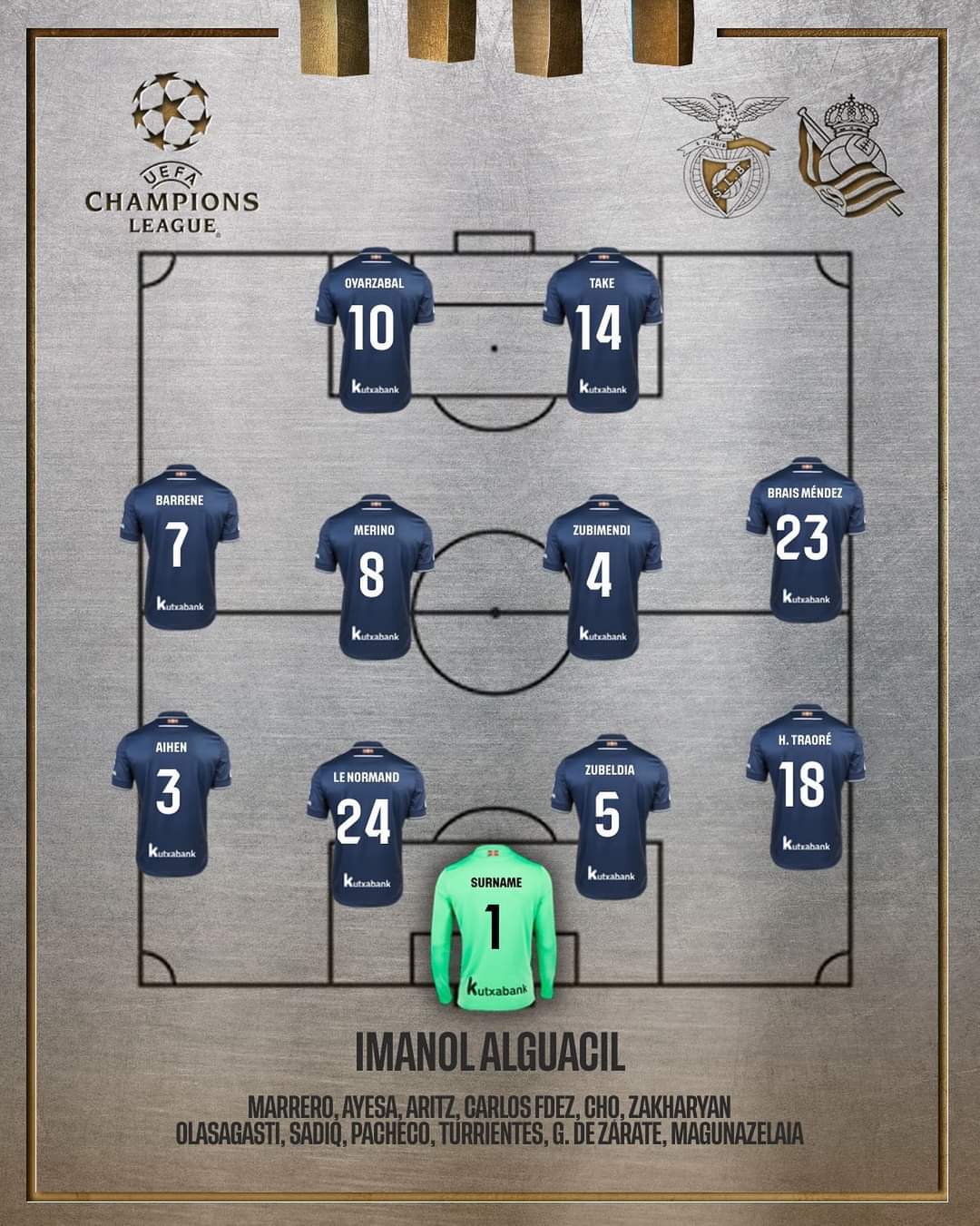 التشكيل الرسمي لمواجهة ريال سوسيداد وبينفيكا في دوري أبطال أوروبا
