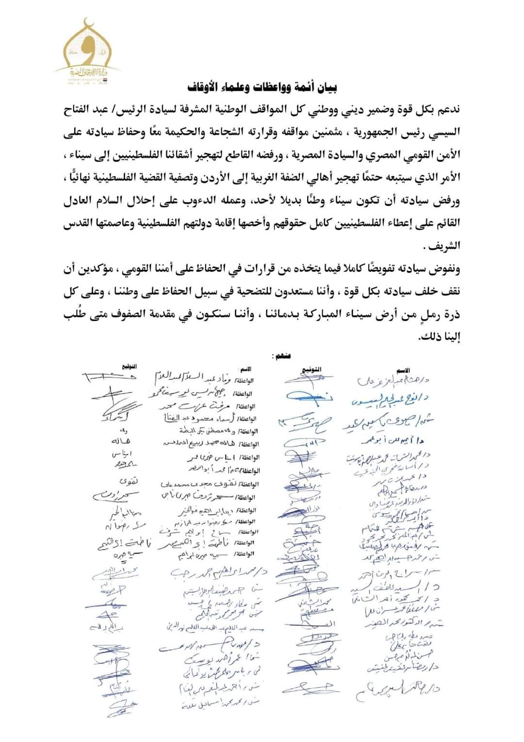 بيان ائمة وعلماء وزارة الأوقاف