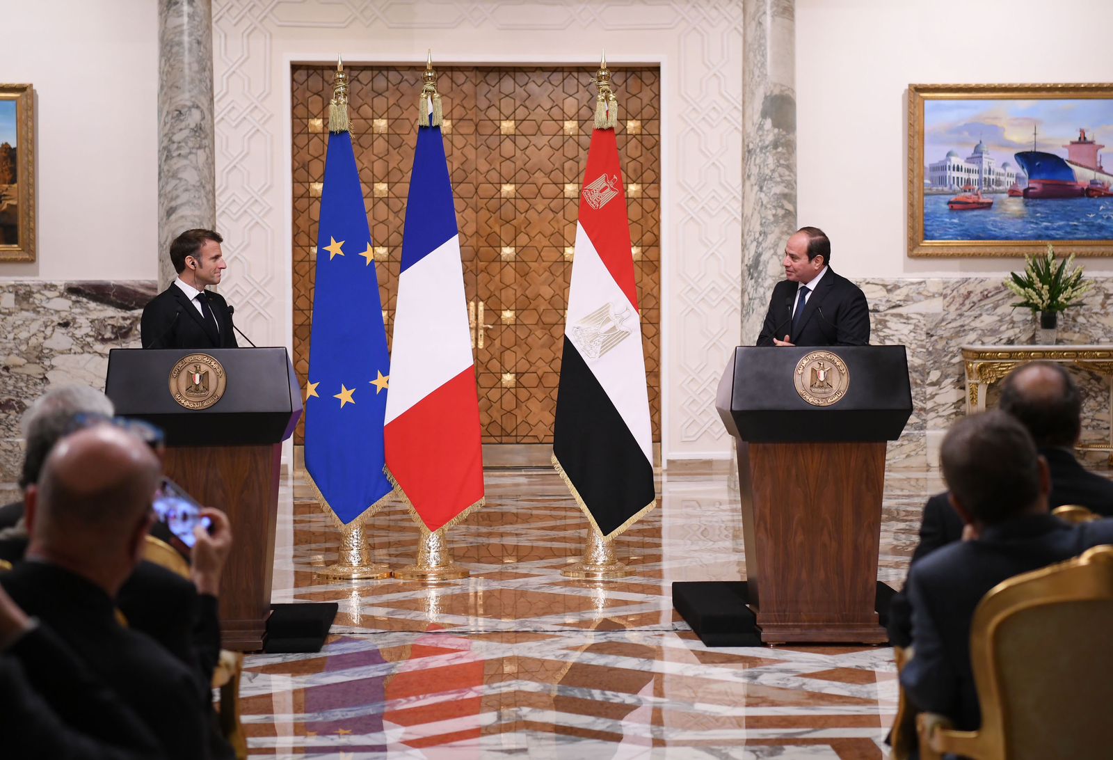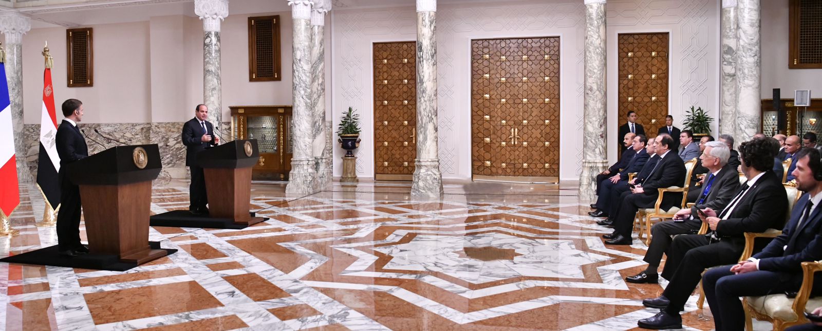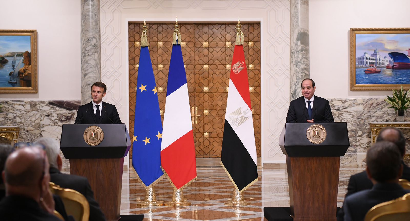 جاء ذلك خلال مؤتمر صحفي بين الرئيس عبد الفتاح السيسي والرئيس الفرنسي إيمانويل ماكرون بالقاهرة، وذلك بمقر رئاسة الجمهورية بمصر الجديدة قصر الاتحادية