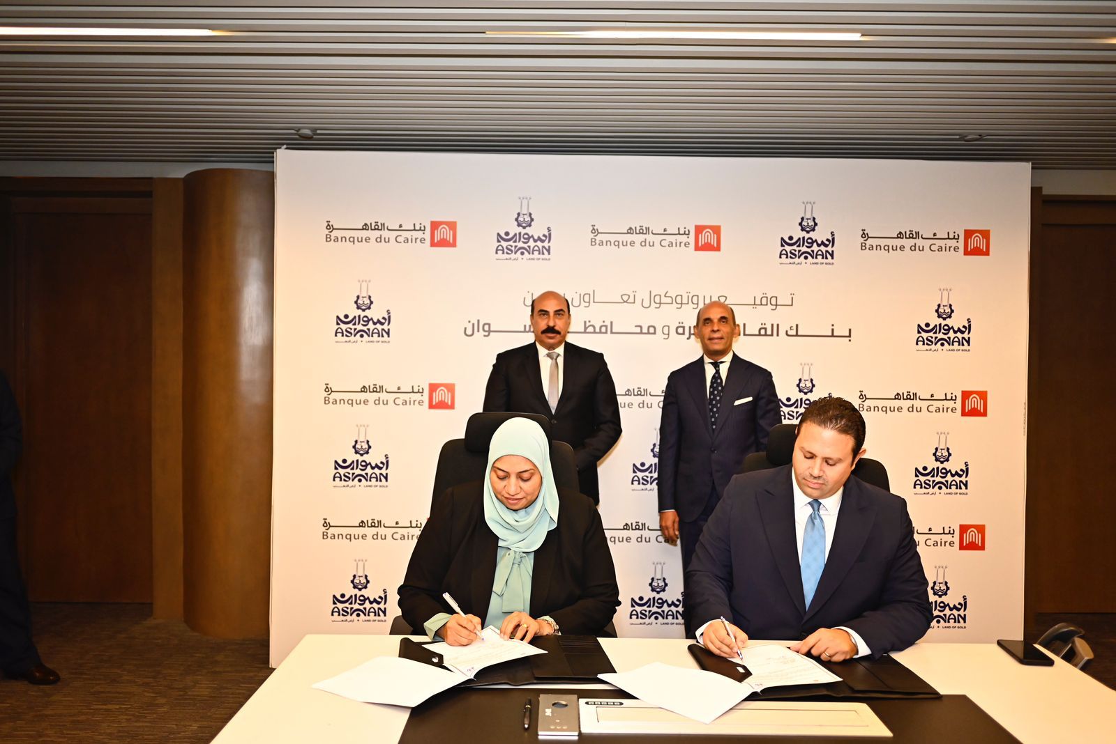 وقع كل من اللواء أشرف عطية محافظ أسوان طارق فايد رئيس مجلس الإدارة والرئيس التنفيذي لبنك القاهرة بروتوكولًا لتجديد التعاون بين البنك والمحافظة في ظل رؤية استثمارية كاملة تعتمد على التعاون مع البنوك والمؤسسات الوطنية الكبرى والمحافظات المختلفة.