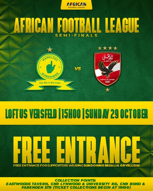 صن داونز يفتح المدرجات للجمهور بالمجان أمام الأهلي في الدوري الإفريقي